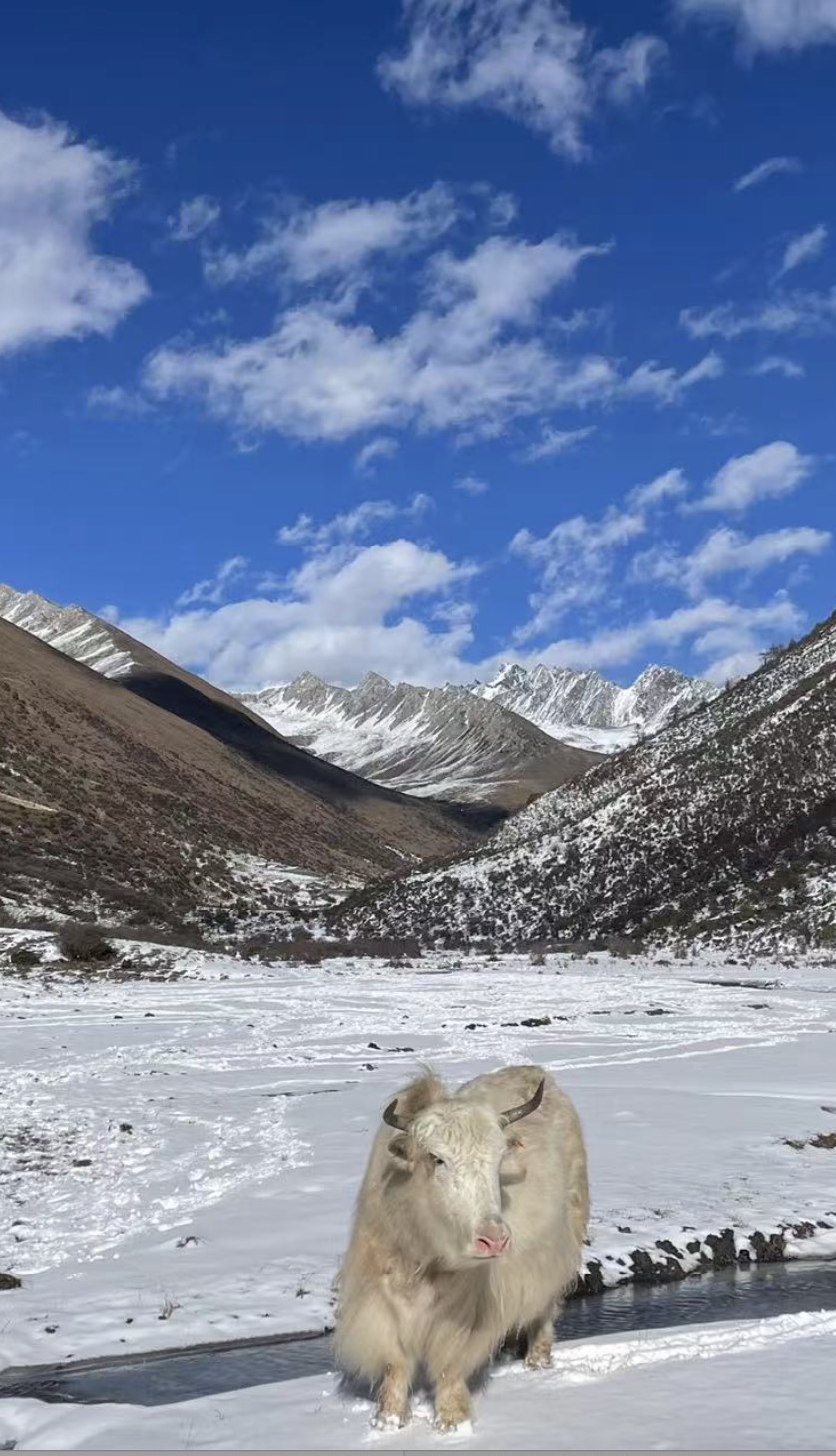 沿途随时能看到雪山下治愈系雪山流水,和牦牛并肩愉快的欣赏雪景,景色一点不输勒多曼因。
