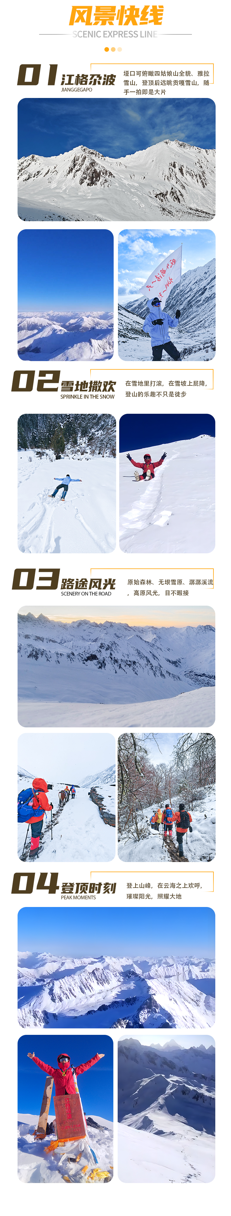 1.【冬季不封山】大多数雪山冬季封山,而江格尕波冬季依然可以攀登,一人成行