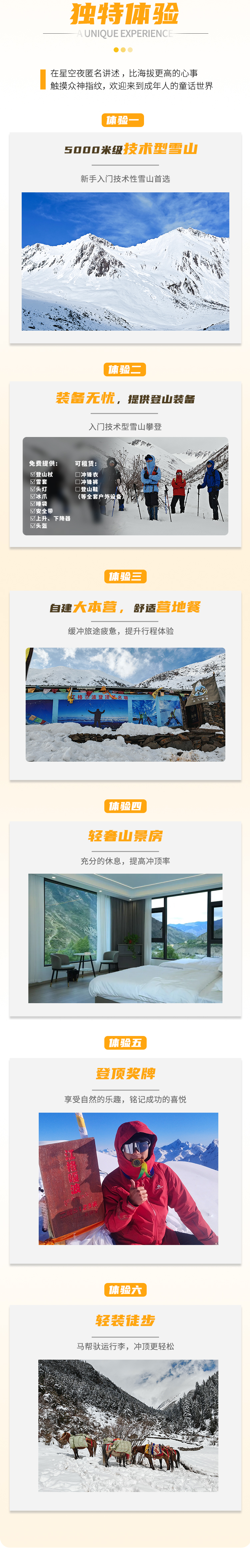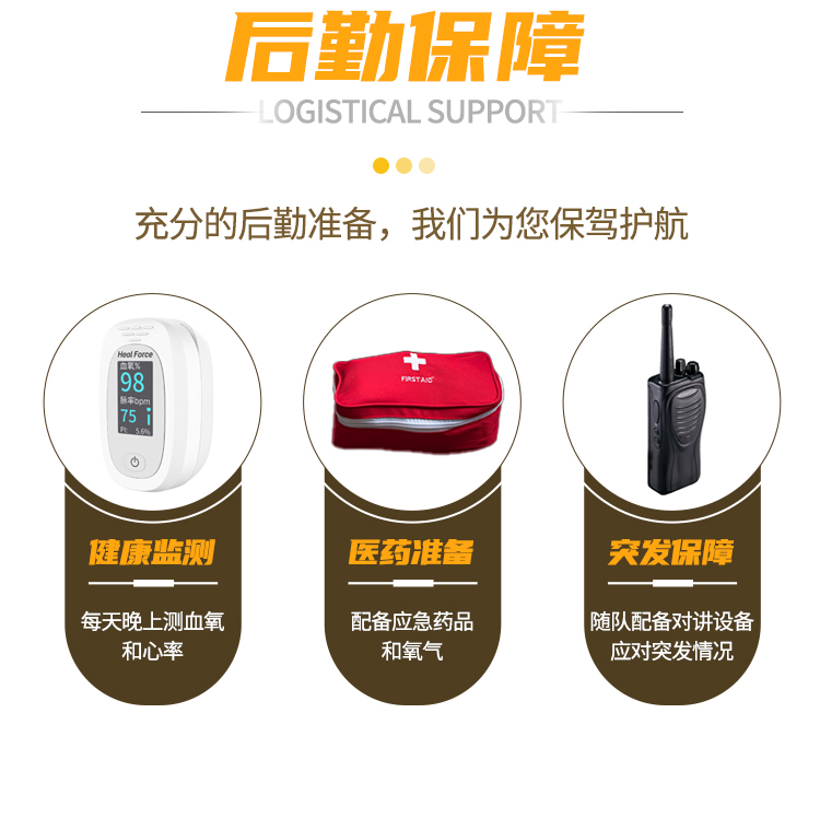 4.领队向导: 提供全程专职专线带队服务,冲顶路段按照约定向导比例陪同协作登山