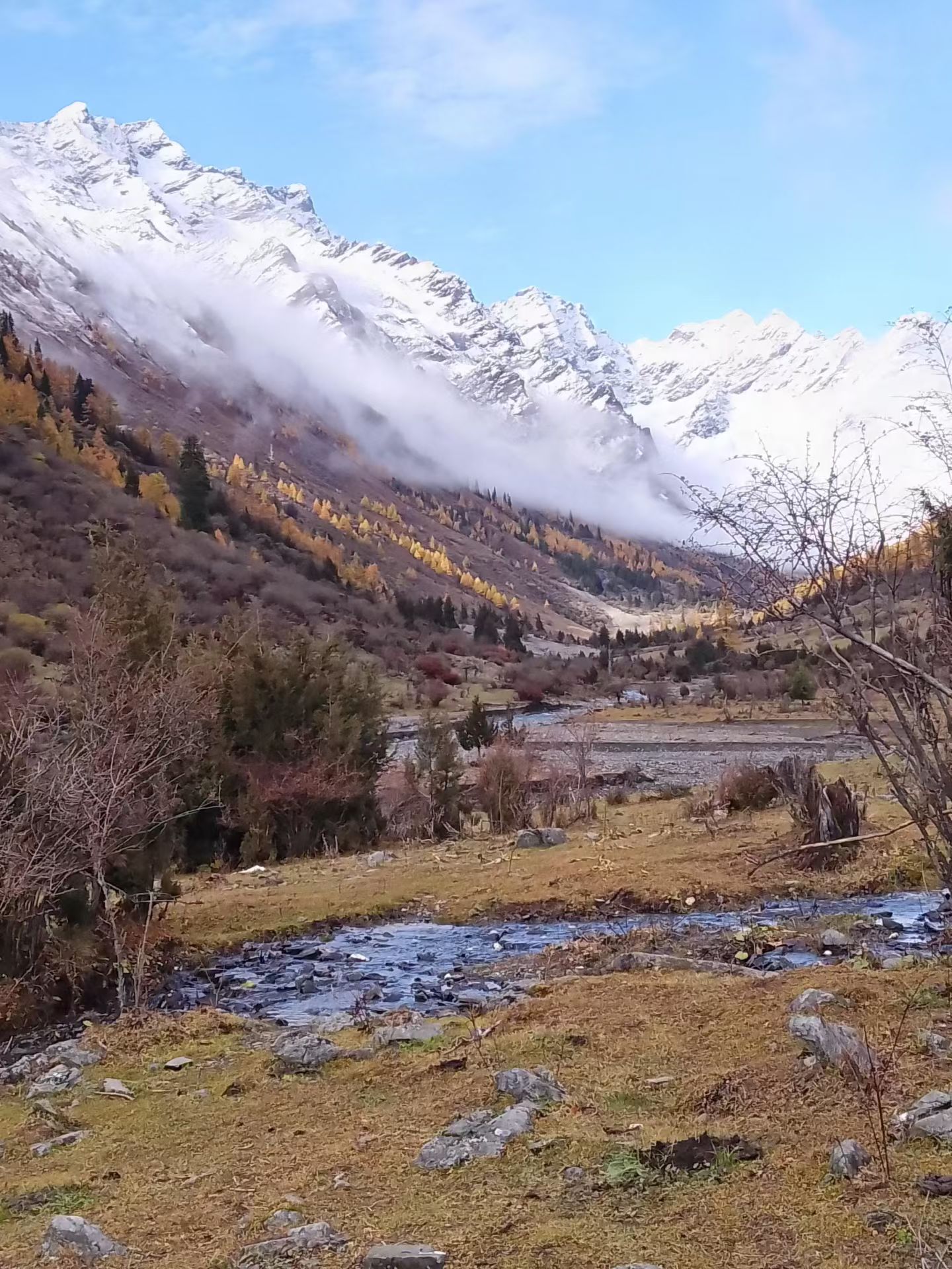 沟内两侧为海拔5000米以上的极高山和海拔3500-5000米的高山 尔寨沟沟底狭窄,两岸山势陡峭,峡谷深切,置身其间,让人强烈感受大自然的鬼斧神工和雄奇壮美,只有大自然最纯粹的馈赠和一份难得的宁静。