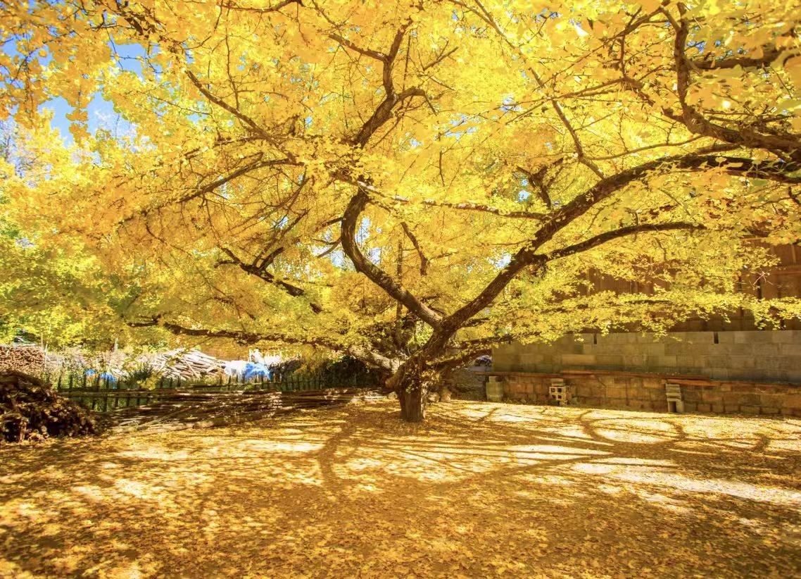 12:30 来到【银杏村】,此刻银杏金黄,古朴的村落房屋,仿佛走进童话世界一般。今天一整个下午,我们将把时间留给大家,在这里静静感受银杏村的美,(下午光线充足,阳光照在银杏树上色彩更加艳丽,适合美拍)。银杏村有古银杏树3000余株,其中有不少树龄已达到四五百年。这些银杏林不仅天然连片,还有一个很大的特点——那就是“村在林中,林在村中”一派浑然天成的纯美秋景。(常规团2小时走马观花,我们留足整个半天时间,放开了体验)。