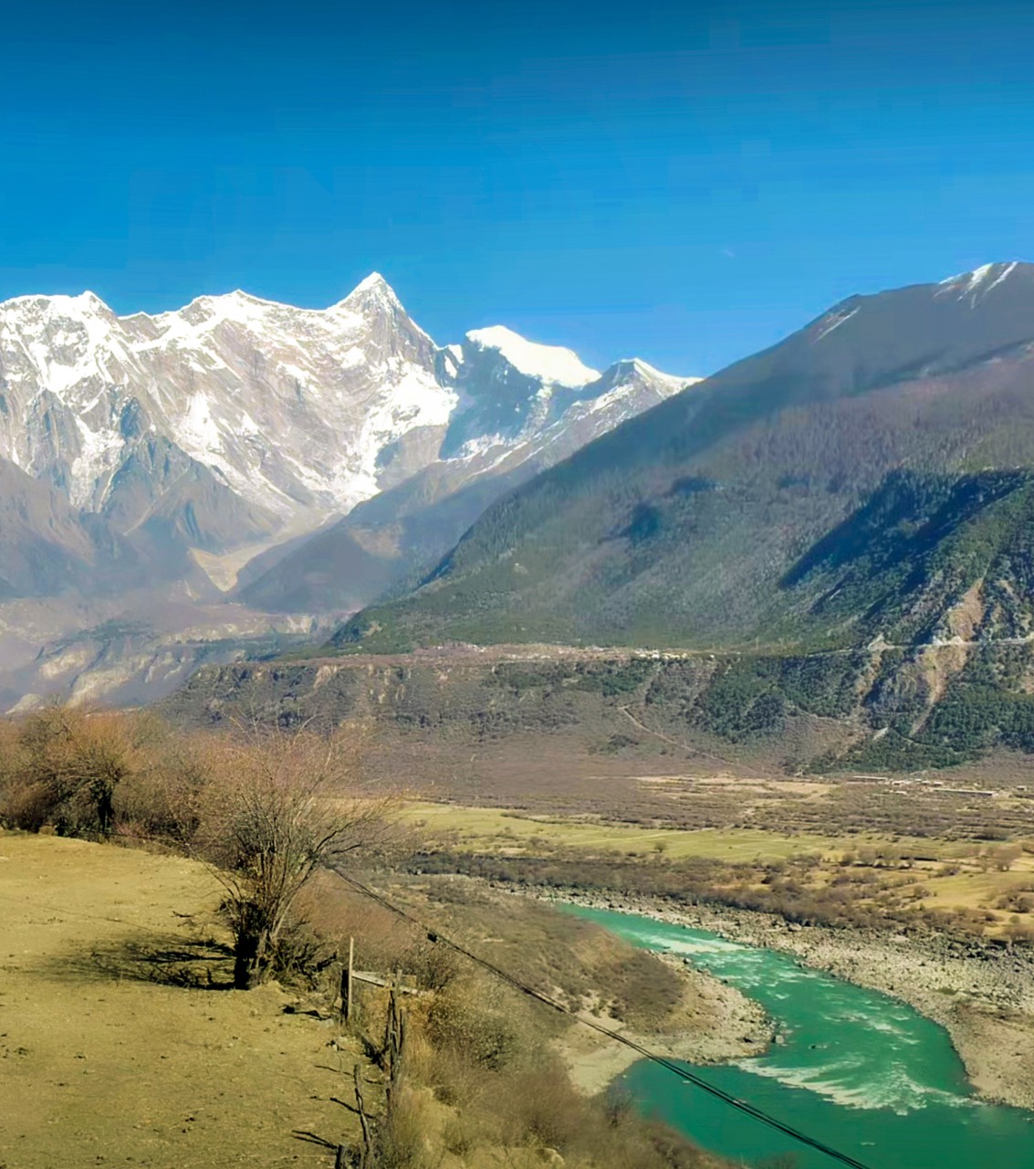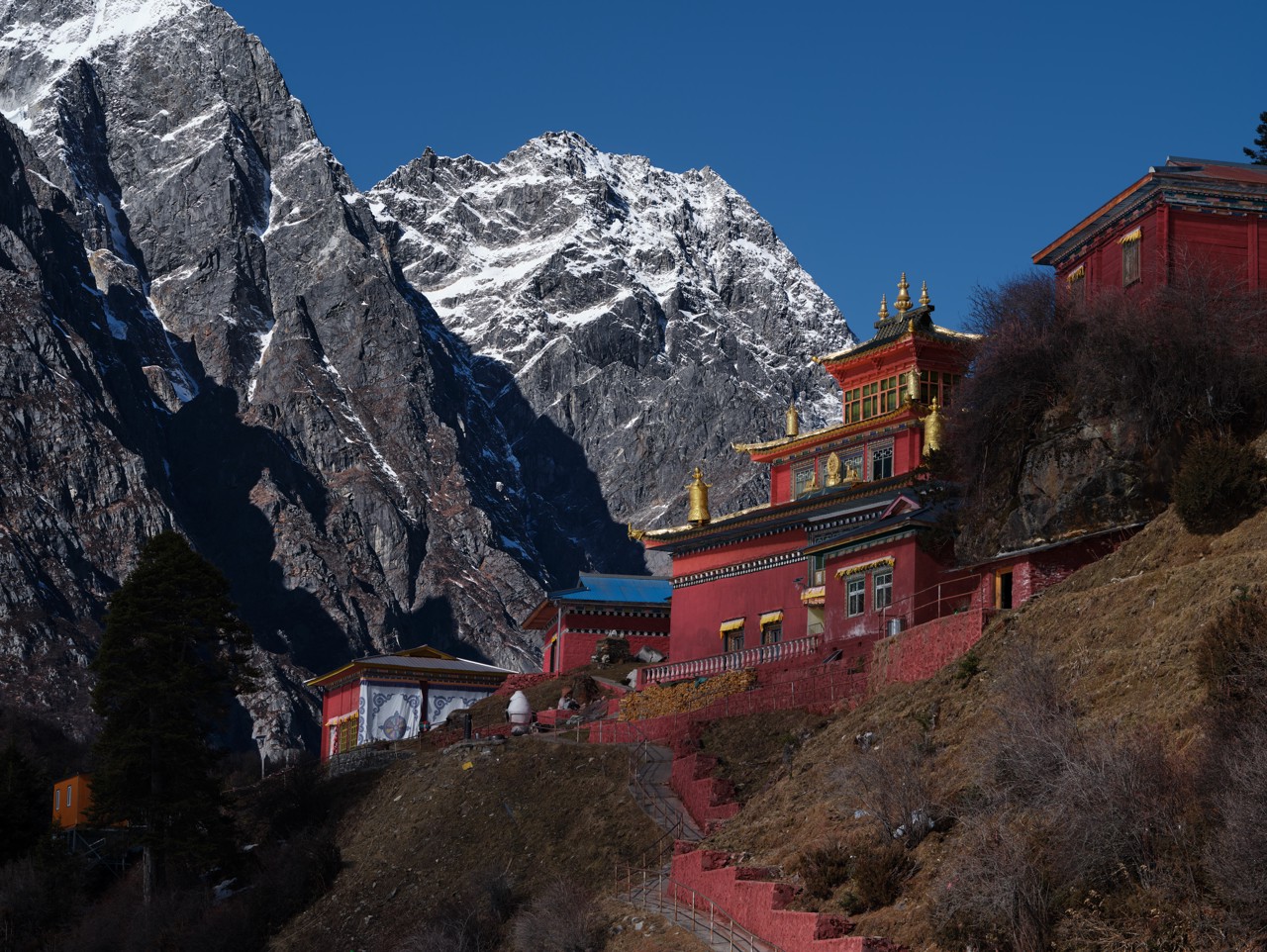 推开院门,南迦巴瓦与多雄拉两座雪峰并立眼前,毫无遮挡——