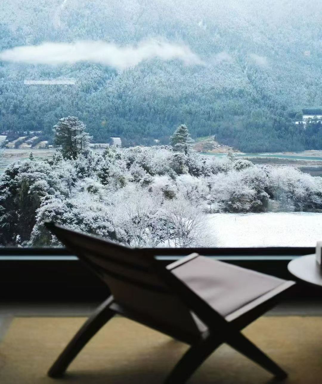 别人在寒风中苦等“日照金山”,而你在暖意融融的房间内,手捧一杯甜茶,静候雪山为你点亮。