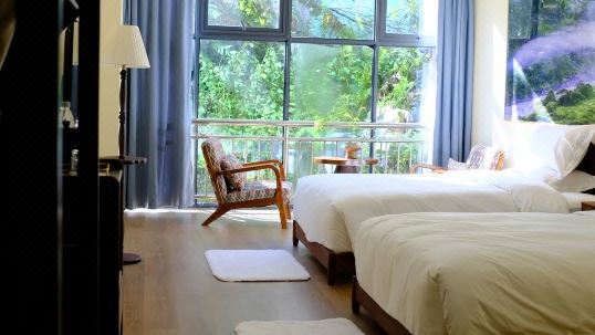 清晨,推门即是云海蒸腾、绿意汹涌,仿佛睡在一朵莲花中心。