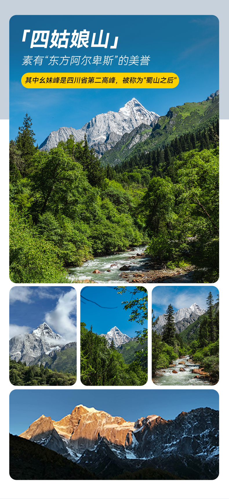从丹巴中路藏寨的炊烟人家,到党岭的湖光雪影,再到四姑娘山长坪沟,风景层层递进。