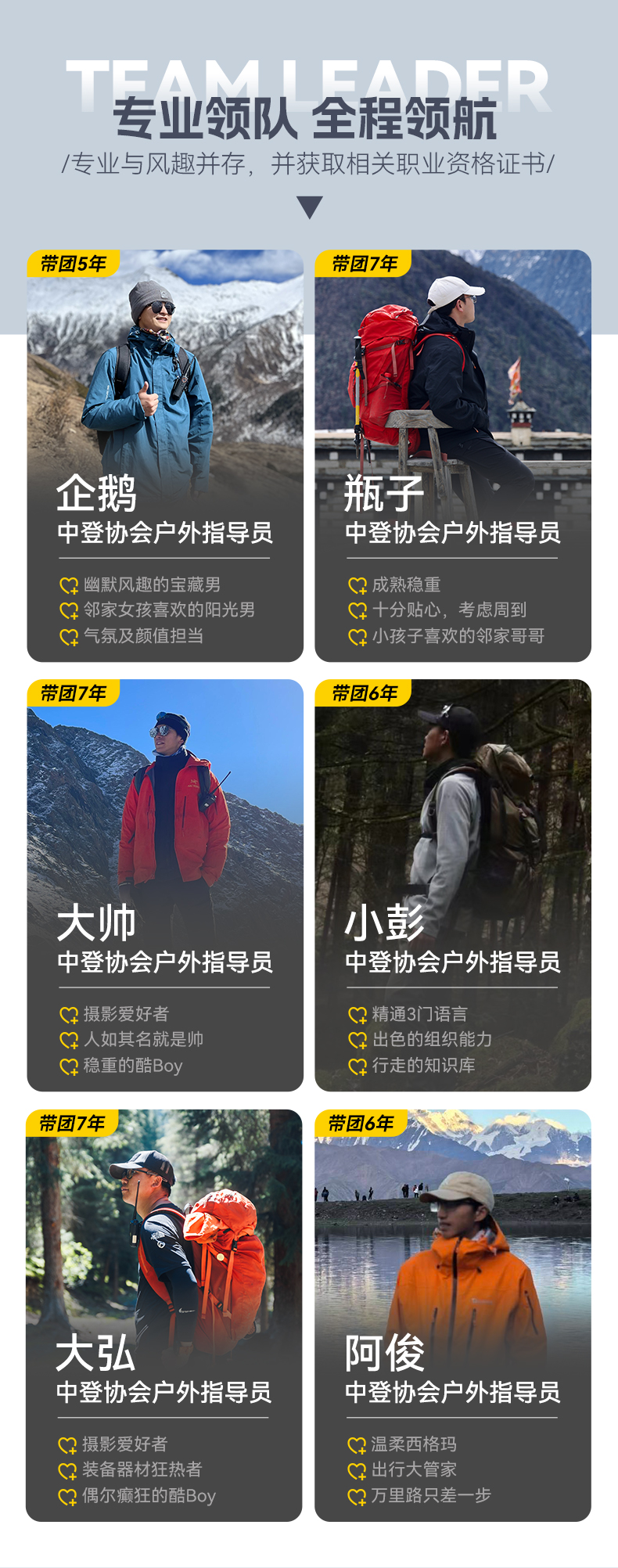 户外专业认证领队(5人及以下司兼导,6人上领队) |