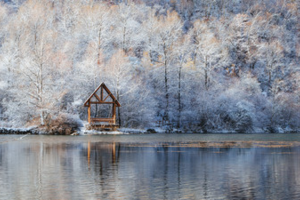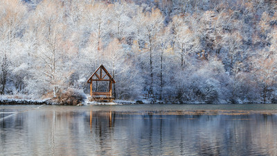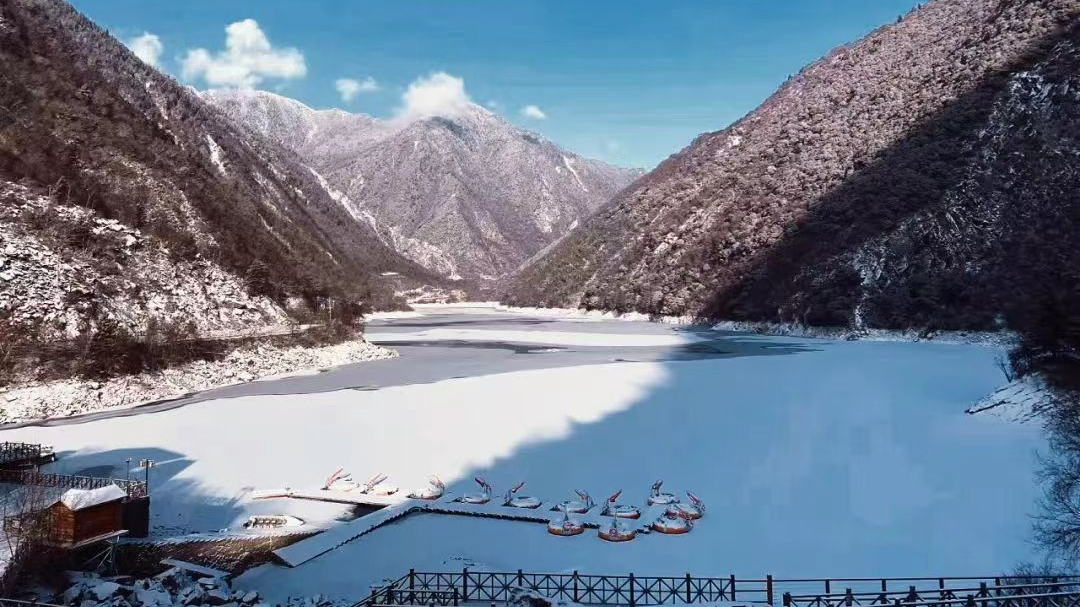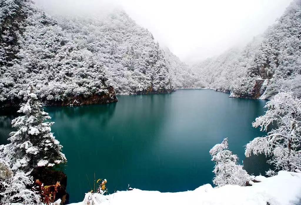 冬季的叠溪·松坪沟一改往日葱茏苍翠的面貌,到处一片洁白,无暇的晶体,就像披着无数晶莹剔透的"珍珠",美丽极了。进入松坪沟便进入了童话世界,那碧水、瀑布、溪流、海子,都能让你心醉。