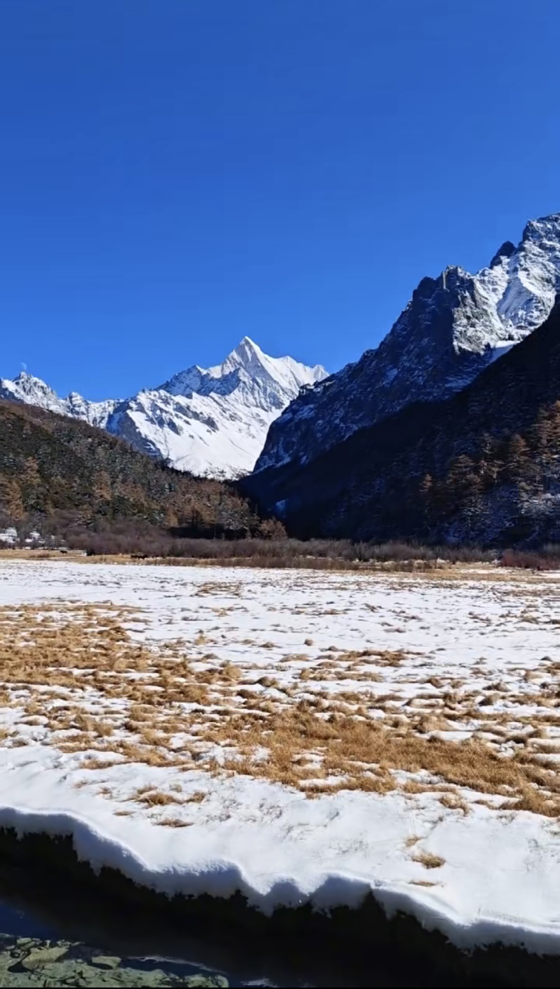 冬日的稻城亚丁,宛如进入了白色的童话世界。山川、湖泊、海子、在白雪的覆盖下显得尤为柔美,呈现着冰雪与宁静编制的梦幻。