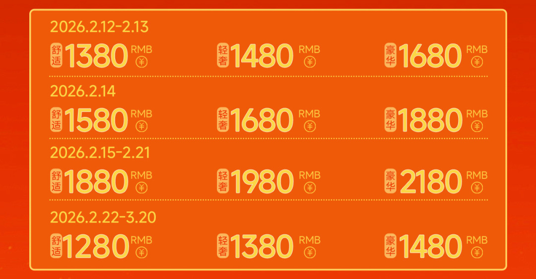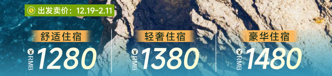 1、价格默认常规团期舒适型(全程2钻,供暖条件为电热毯)标间费用,其他团期费用参考小程序报价
