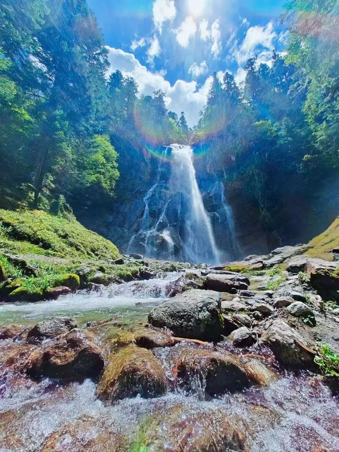【海子口瀑布】海子口瀑布,环境优美,树绿水清,无比出片,光是走在这样的环境里让人心情舒畅,大概几百米就能看到美丽的瀑布,不介意身上被小水珠打湿的队友可以无限靠近瀑布,感受清凉。