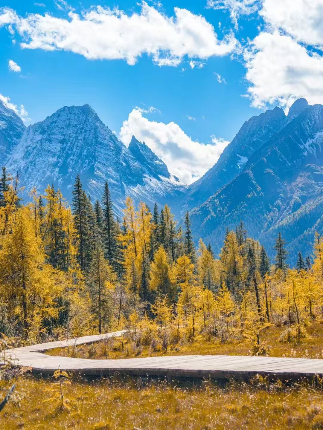 其串联起了毕棚沟、四姑娘山等景区,从海拔2000-3600米的高原生态带穿过,四周雪山环绕,植物种类丰富,是名副其实的雪山下景观大道。被称为“川版独库公路”圣洁的雪山与你同行。