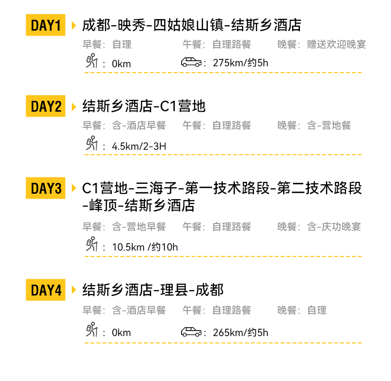 成都-(车程约200KM)-四姑娘山镇-(车程约75KM)-结斯乡酒店