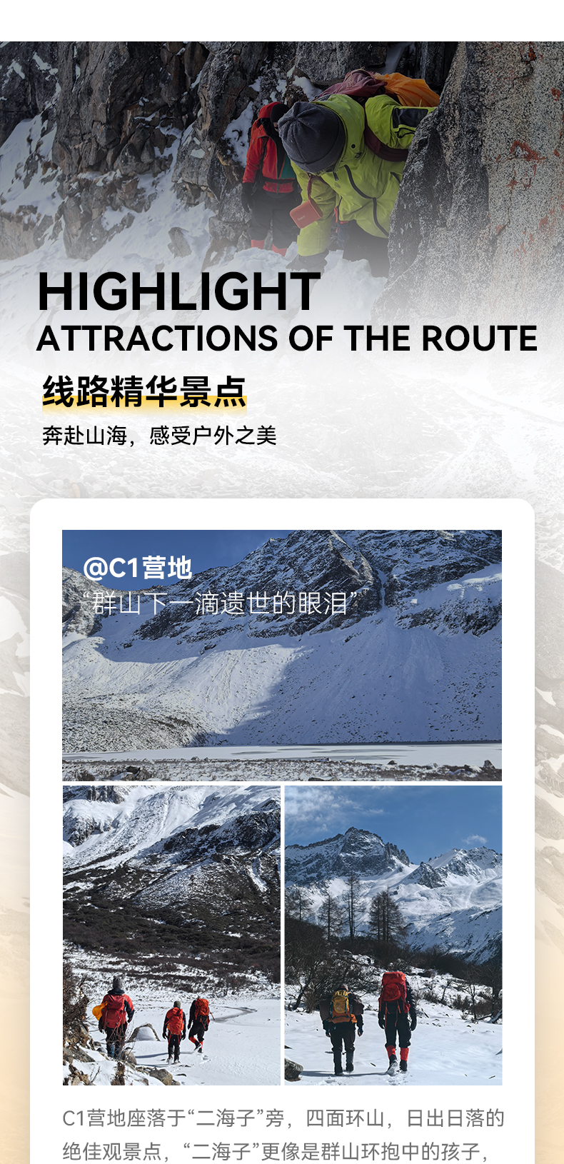 1.今需要攀登两个技术路段,体力消耗巨大,需要大家合理分配自己体能。