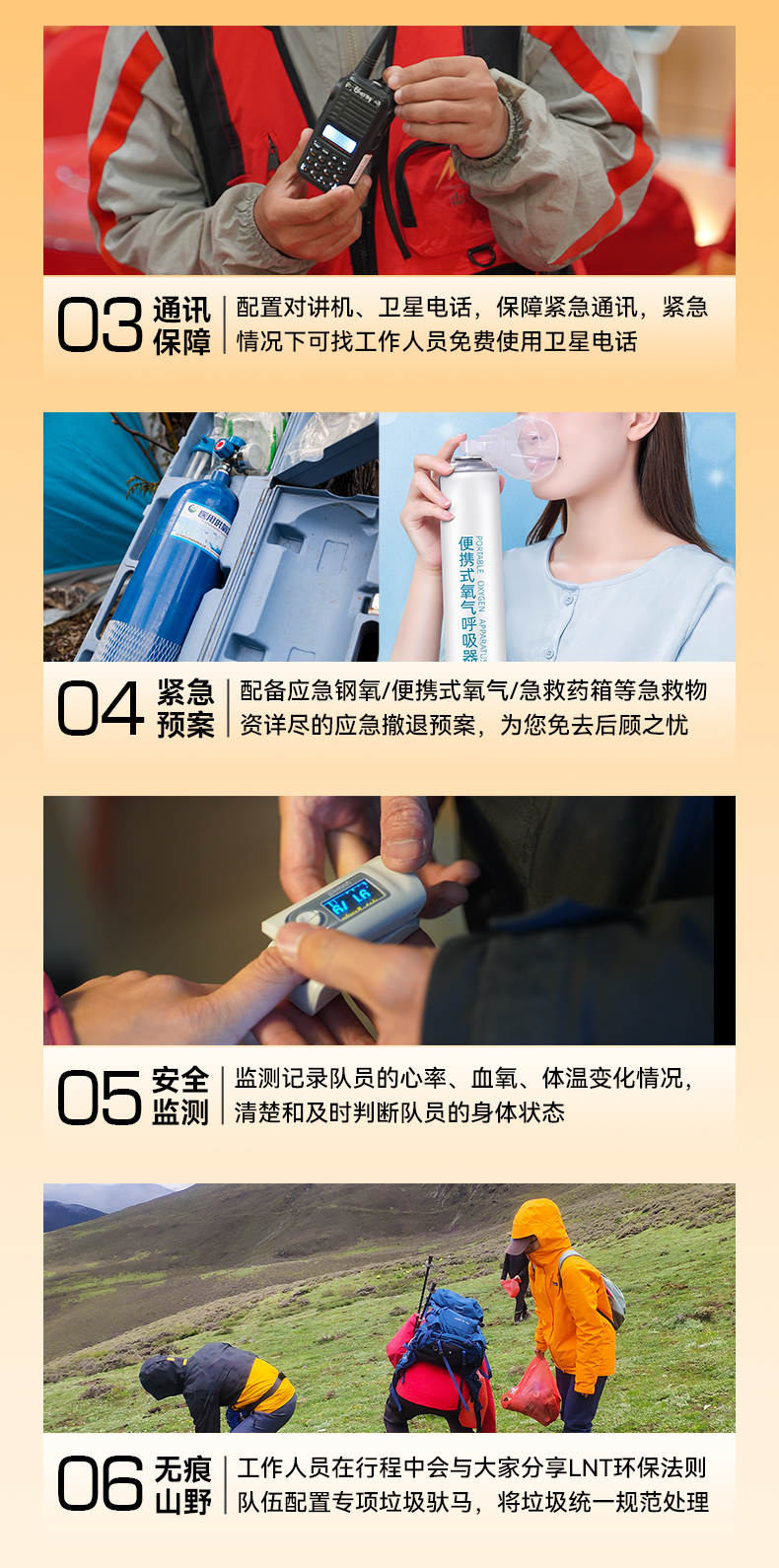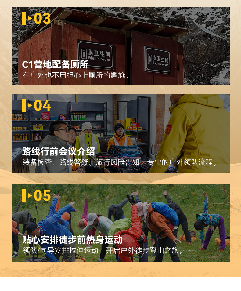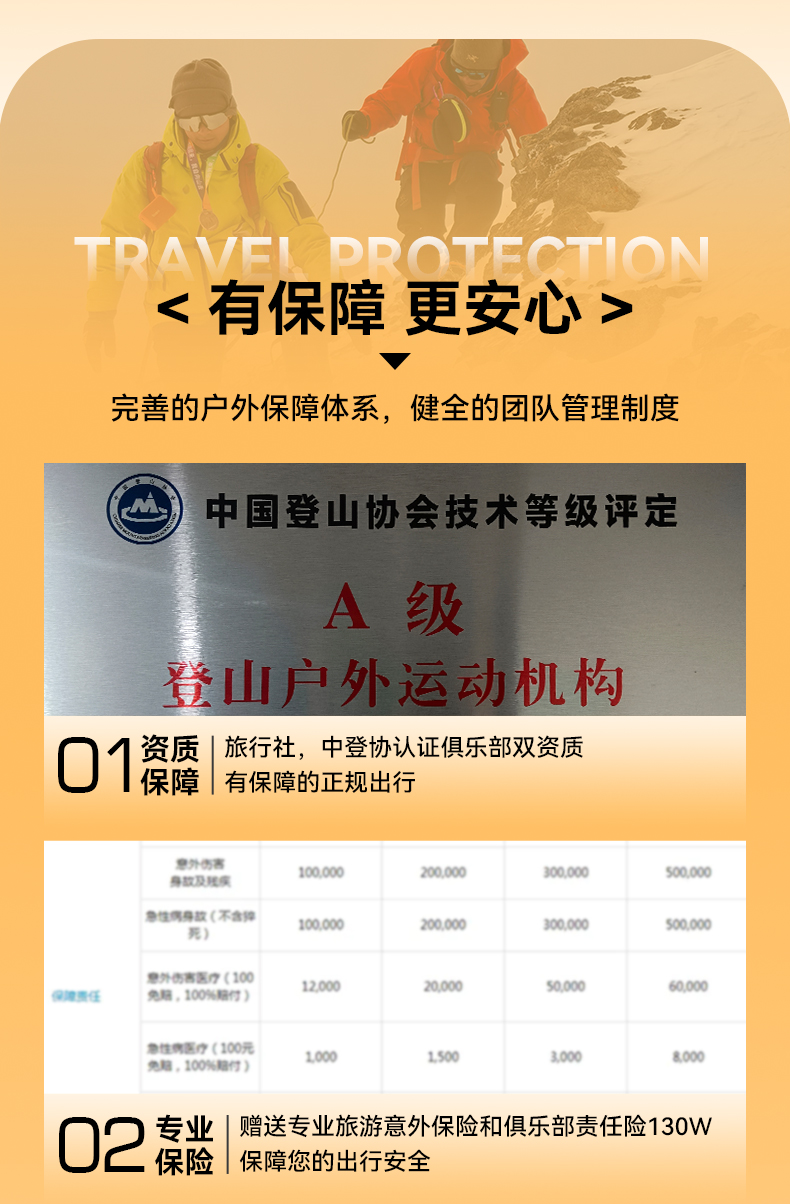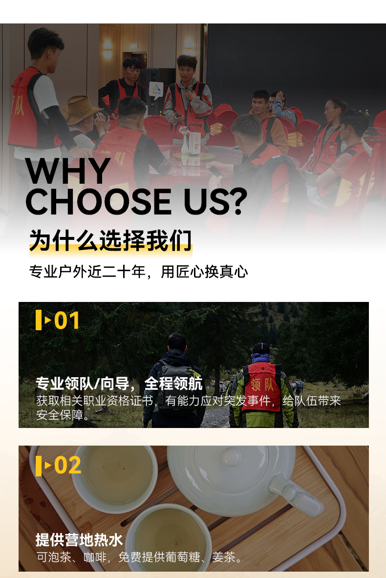 4.协作:户外专业认证领队或者专业认证向导,协作比1:1。