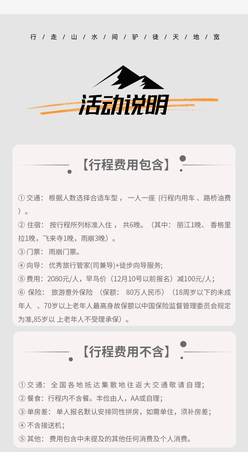 徒步路线较为偏远,条件有限,主办方有权根据具体房态进行调整