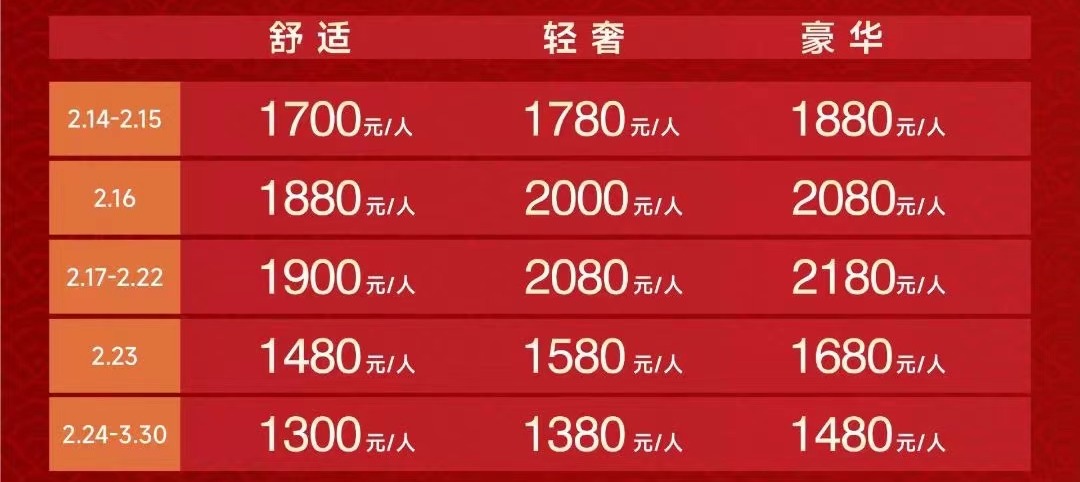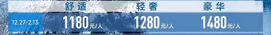 1、价格默认常规团期舒适型(全程2钻,供暖条件为电热毯)标间费用,其他团期费用参考小程序报价