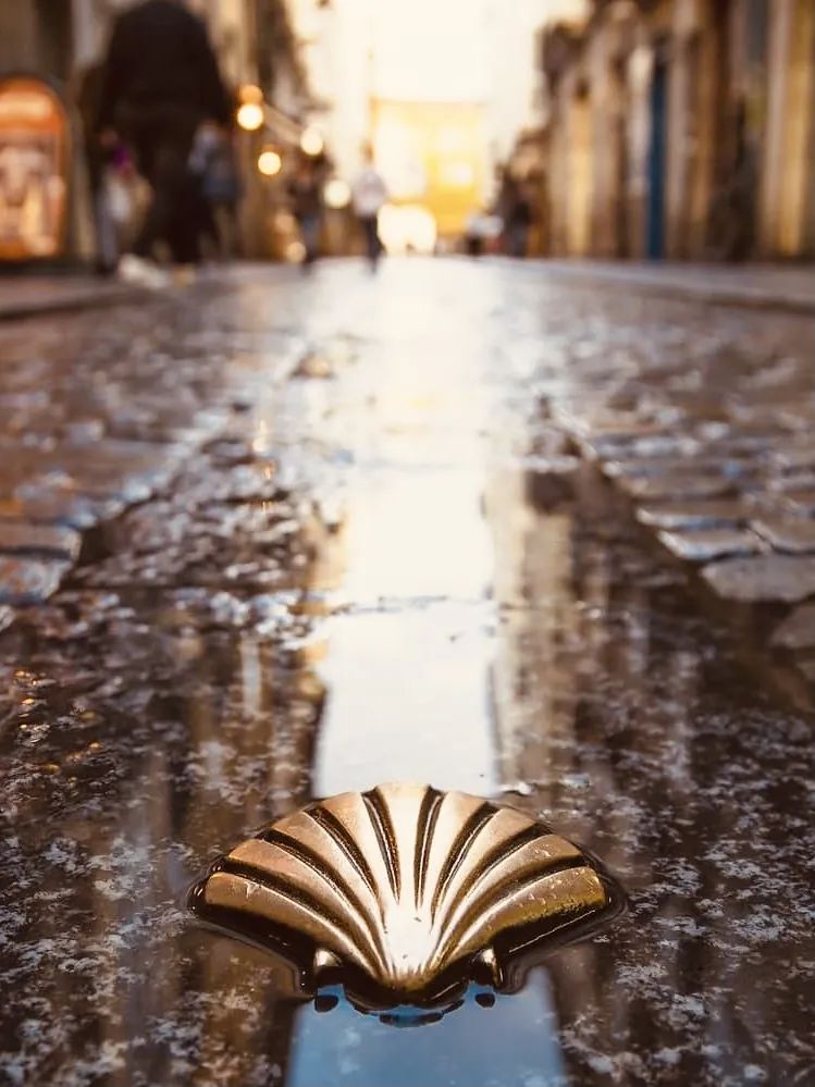 朝圣之路也被称作圣雅各之路。传说他的遗体在加利西亚的海滩被找到时,全身为扇贝所覆盖,因而贝壳成了人们圣地亚哥朝圣的勋章。大多数朝圣者会选择带上一枚扇贝,来象征自己这趟朝圣之旅,它也成为区分普通旅行者和朝圣者的标志。
