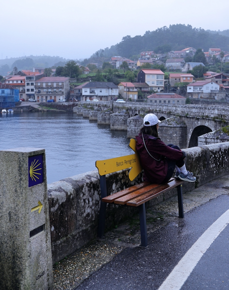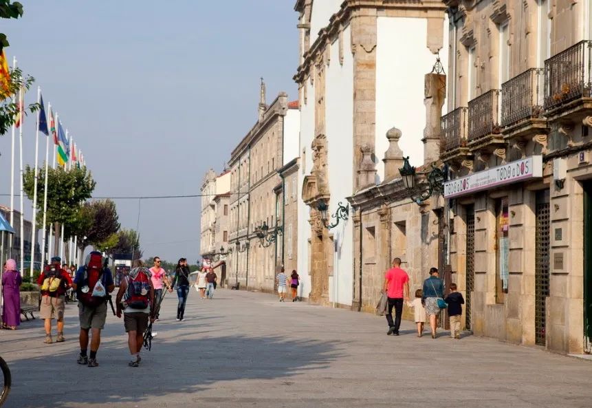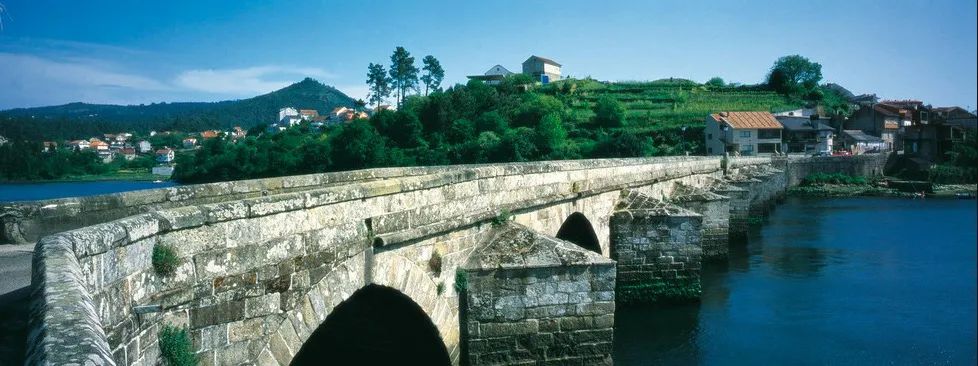 从庞特韦德拉古城出发,朝圣者穿越充满历史与生活气息的石板街道,经过城市核心,抵达古老的布尔戈桥(Ponte do Burgo)——它横跨清澈的莱雷斯河(río Lérez),也象征着我们即将离开城市、再次投入自然的怀抱。