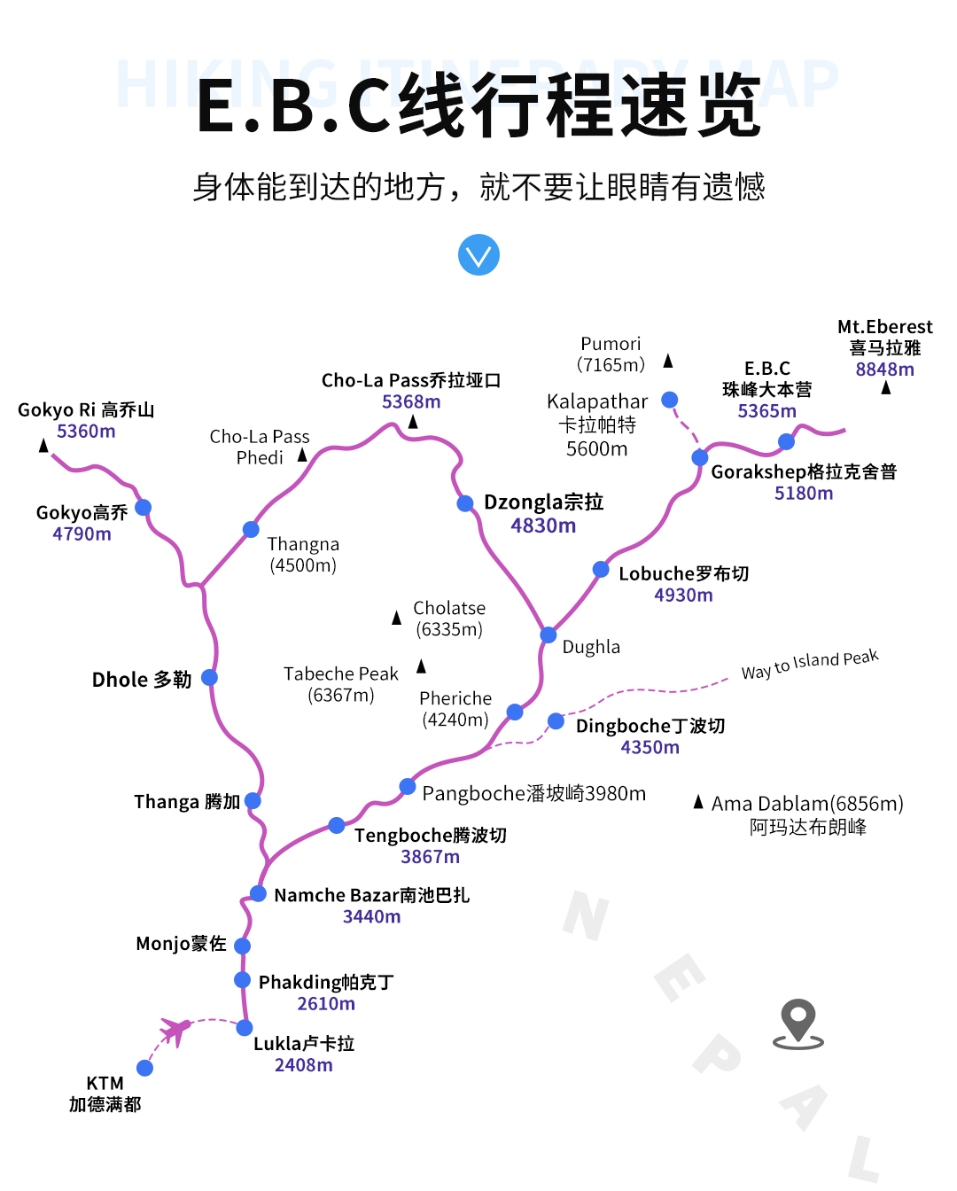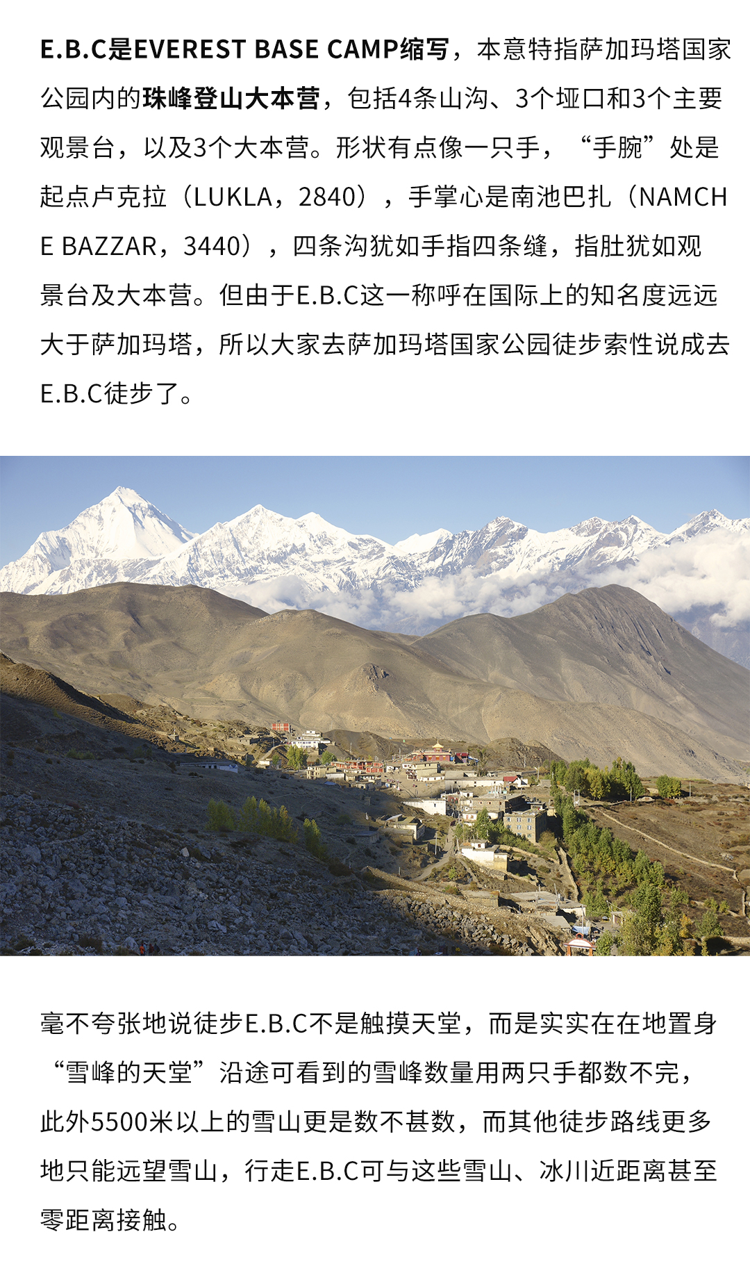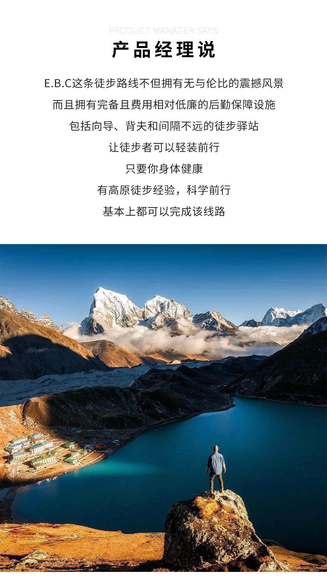 EBC徒步线路大多在海拔4000米之上,徒步过程中早晚温差和海拔变化较大,紫外线强烈,保暖防寒措施一定要做足!