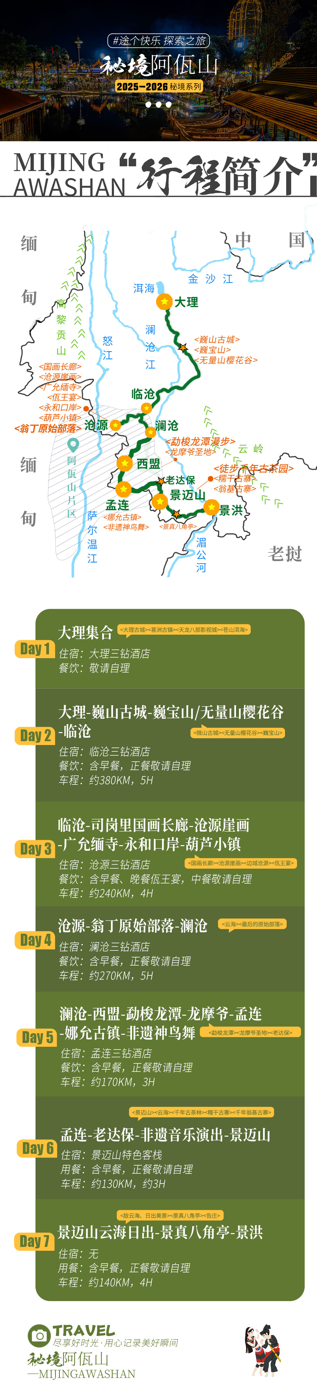 D7 :抵达景洪时间约15:00,建议预定17:00以后的高铁或航班。