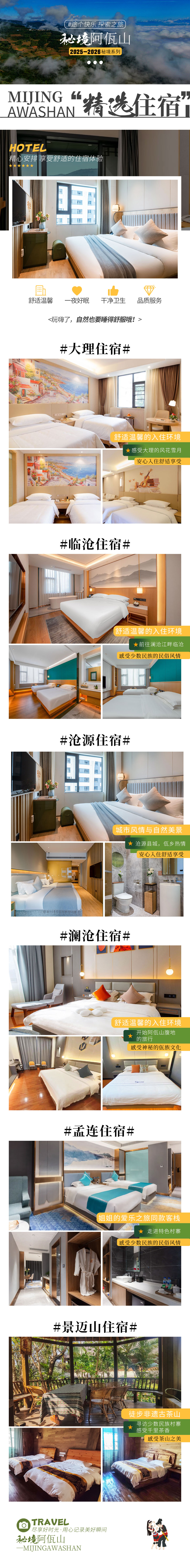 2、全程住宿费6晚(大理三钻酒店1晚,临沧三钻酒店1晚,沧源三钻酒店1晚,澜沧三钻酒店1晚,孟连三钻酒店1晚,景迈山特色客栈1晚);