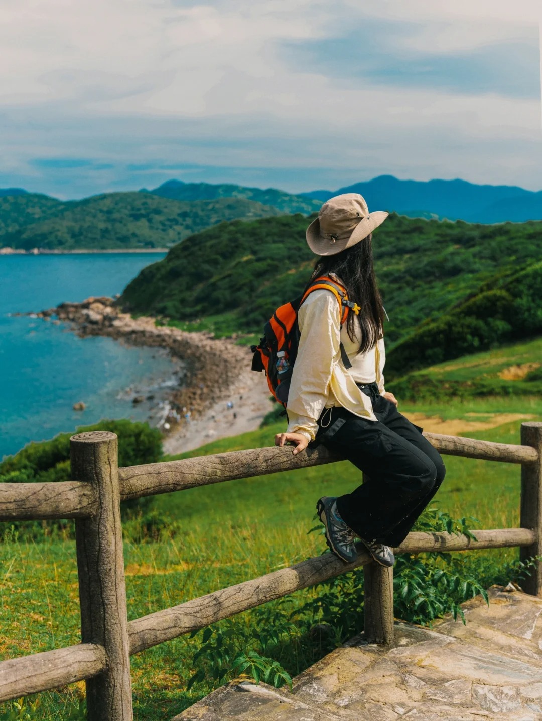 15:00 翻过西湾山达到西湾沙滩,稍事休息,在士多店点上一杯饮料欣赏海景