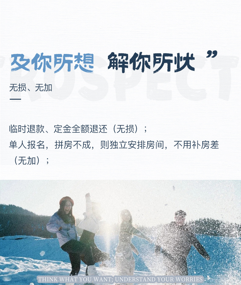 5、我们的活动保证纯玩无购物,如在活动进行中,因个人原因在景区、餐厅、体息区等地的购物场所消费,我们需要提醒您:理性消费并索要凭证,如产生消费争议,将由您与售卖商品的商家自行解决。