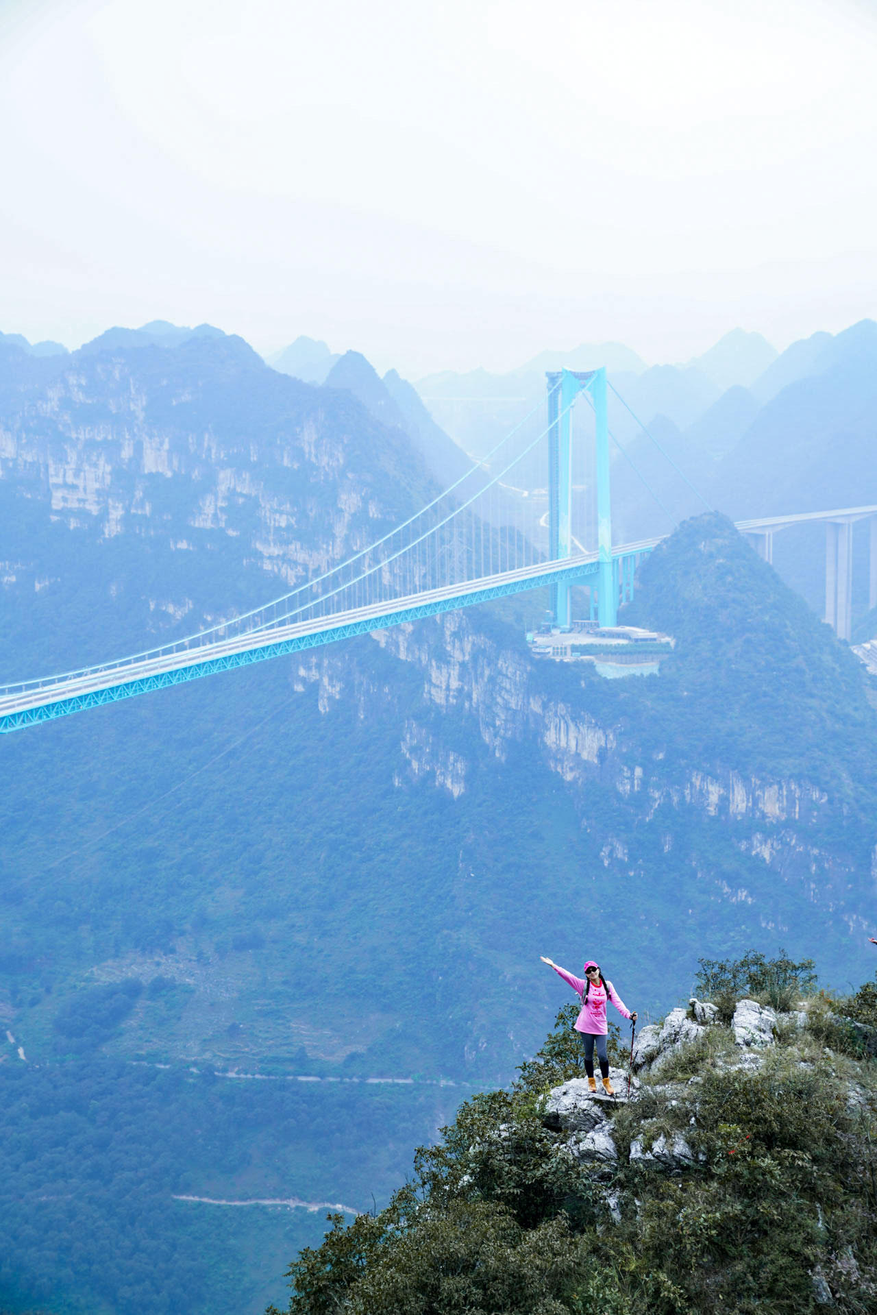 站在花江峡谷大桥上俯瞰万丈深谷,