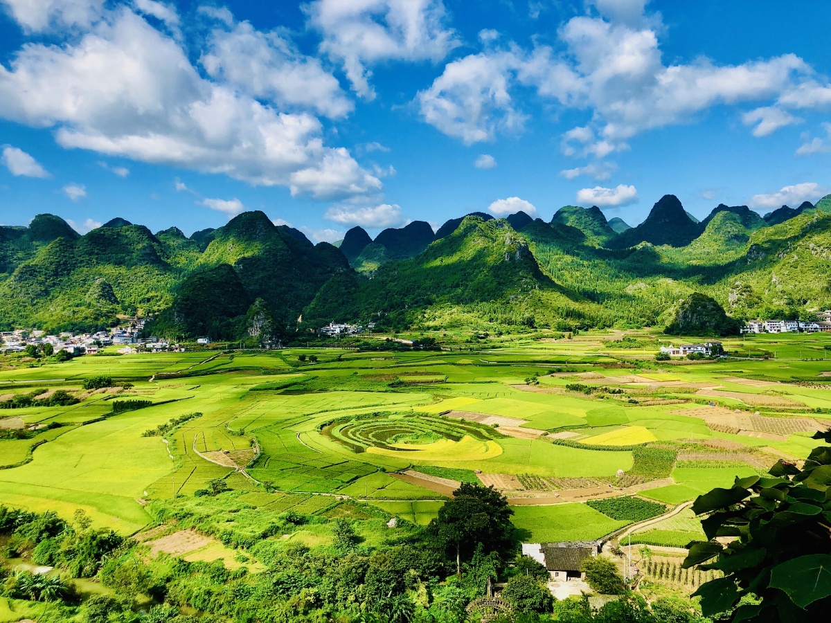 说起万峰林,最为出名的当属八卦田,这是一片天然形成的八卦田,平卧在纳灰寨农田中央,其造型神奇迷离,如神匠打造,层叠有序。