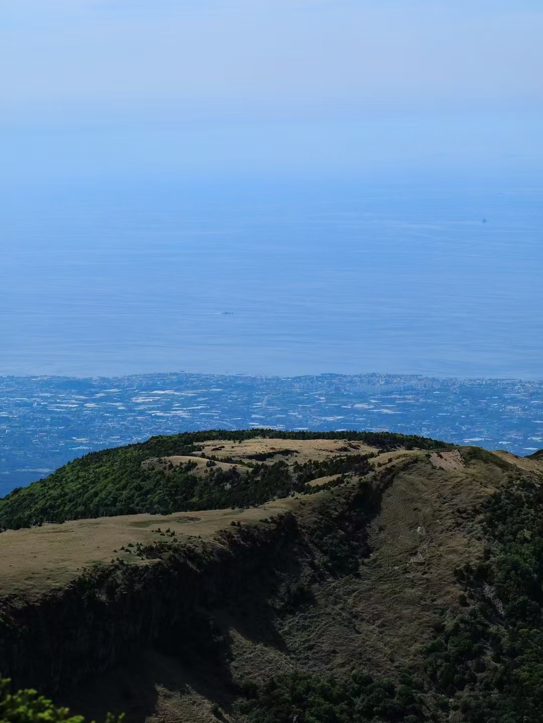 汉拿山(Mt. Hallasan)。这座海拔1950米的火山,将整座岛屿一分为二:北侧是济州市,南侧是西归浦市。