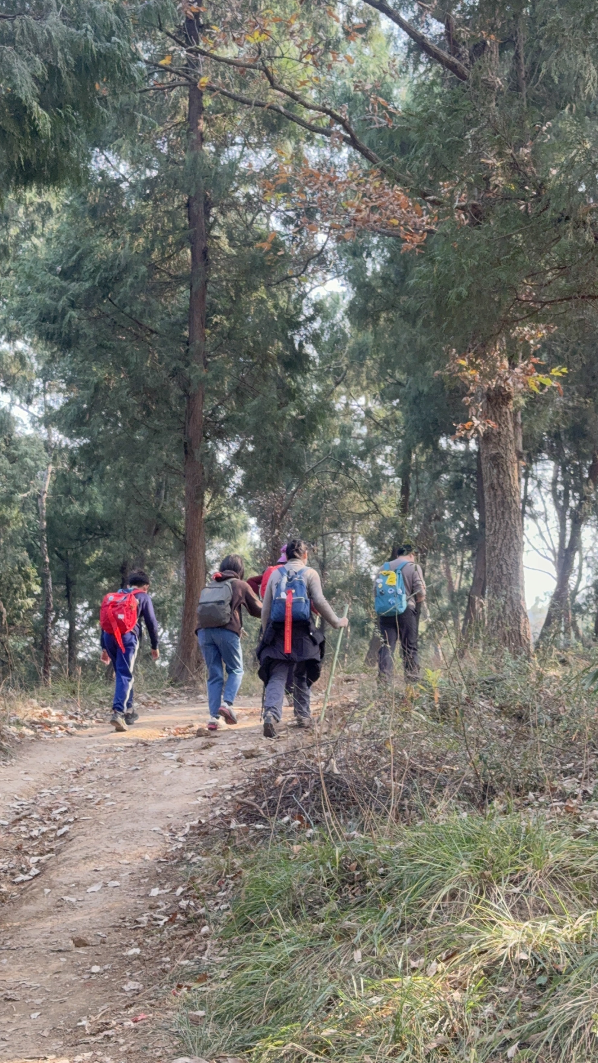 ▶ 早上指定地点集合出发,车上领队介绍行程安排及注意事项,发放小奖品,一路欢声笑语,预计1.5小时车程到达下车点,下车先来张大合照,然后跟随领队的脚步开始今天的徒步之旅。