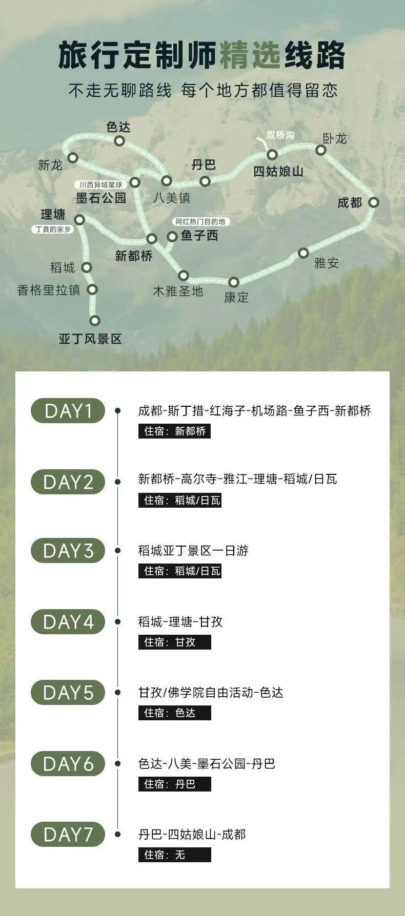 ■ 稻城亚丁景区不再二进沟,则游玩短线。