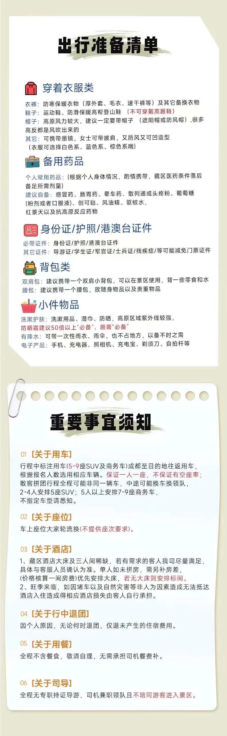 □ 如涉及大交通的行程,请务必联系客服确认活动是否成行,确认成行后方可预订大交通,如因未确认导致大交通损失由个人承担