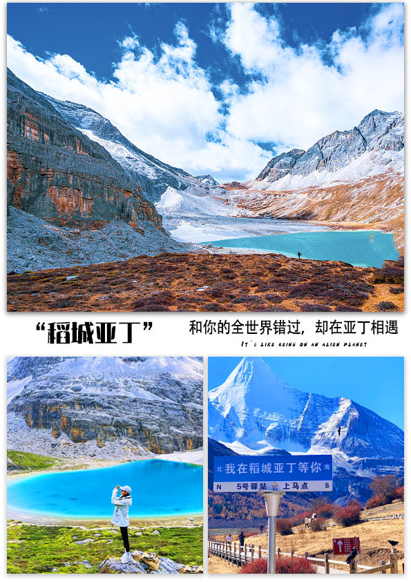 稻城亚丁被国际友人誉为“水蓝色的星球上的最后一片净土”。以仙乃日、央迈勇、夏纳多吉三座雪峰为核心区。它的景致保持着在地球上近绝迹的纯粹,从全世界路过,也忘不了眼前一瞬。