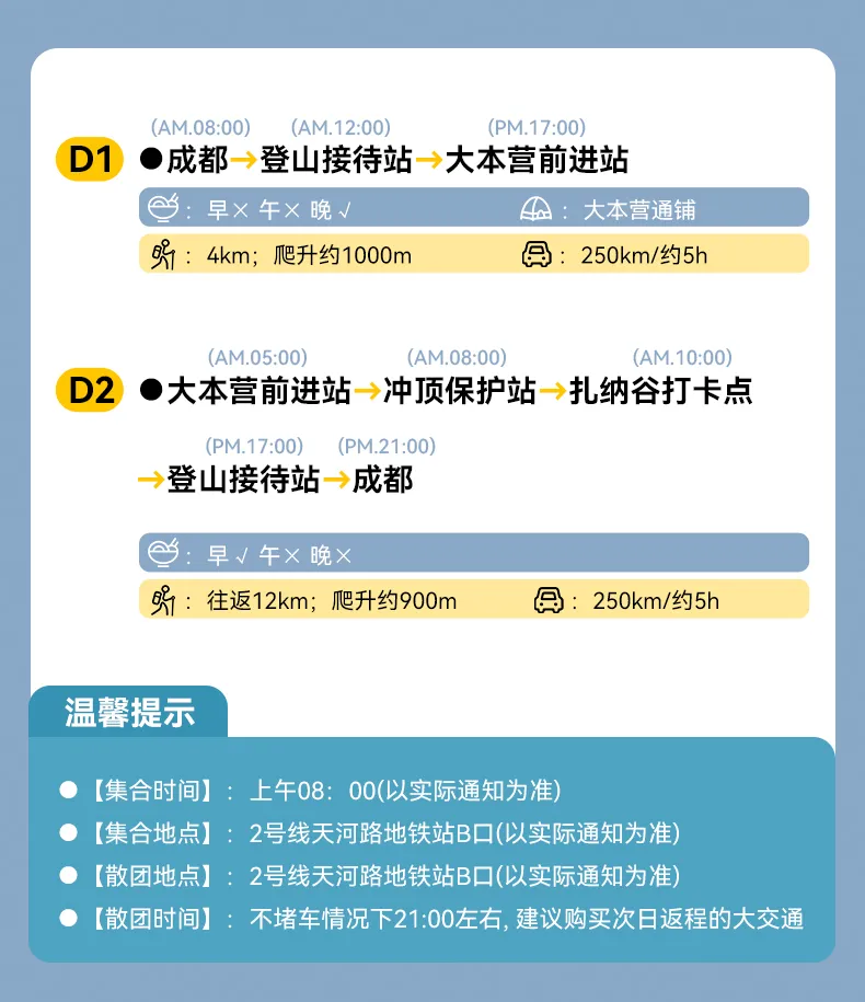 2、今日攀登强度大,对体能要求高,请一定要食用早餐。