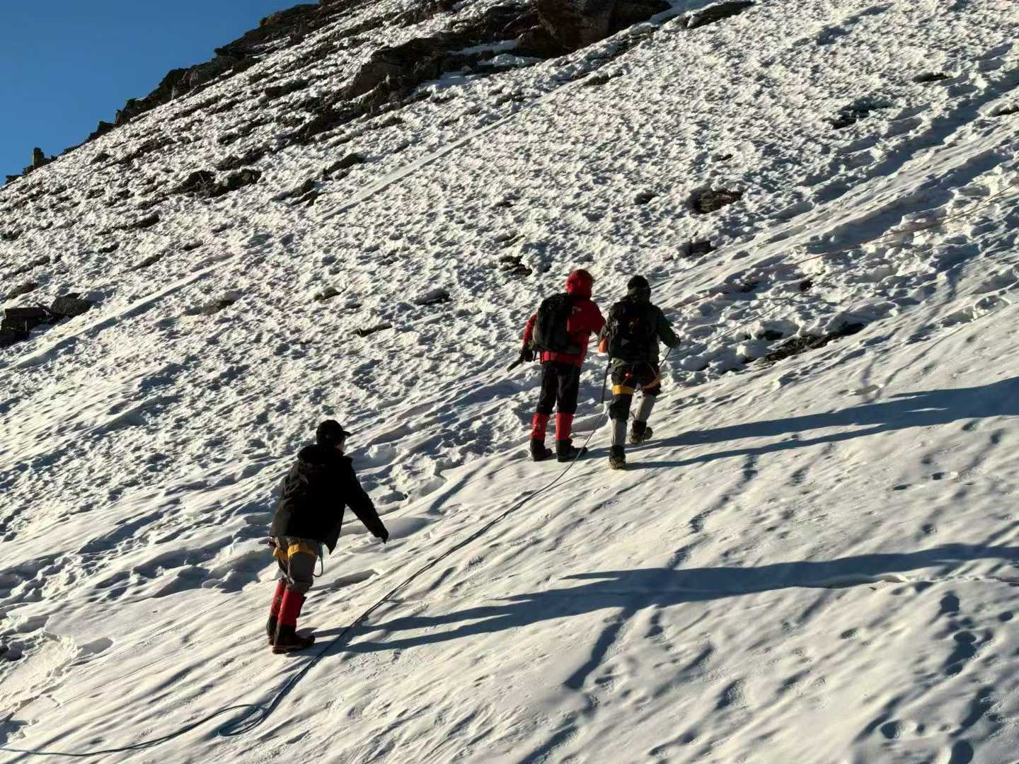 ▶随后一鼓作气向顶峰发起最后冲击。登顶后短暂停留庆祝,便下撤至保护站,卸下技术装备,继续返回登山接待站。最后乘车离开,带着成功的喜悦与回忆,当晚返回成都,结束这次难忘的雪山之旅。