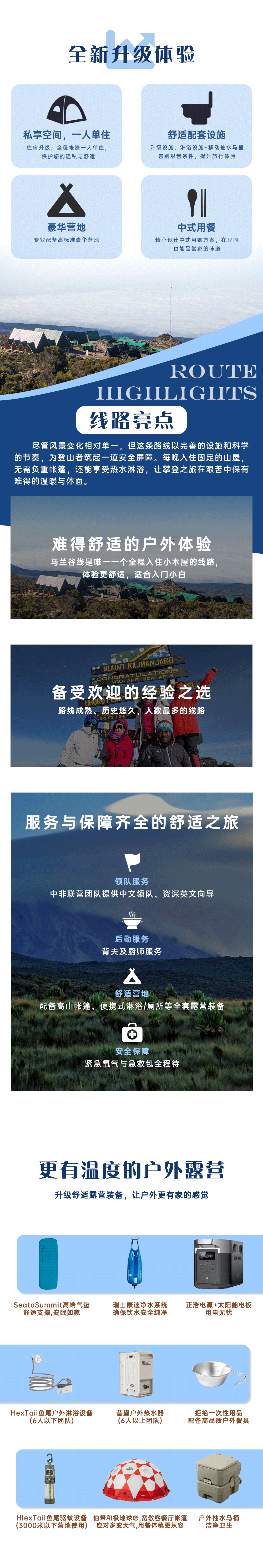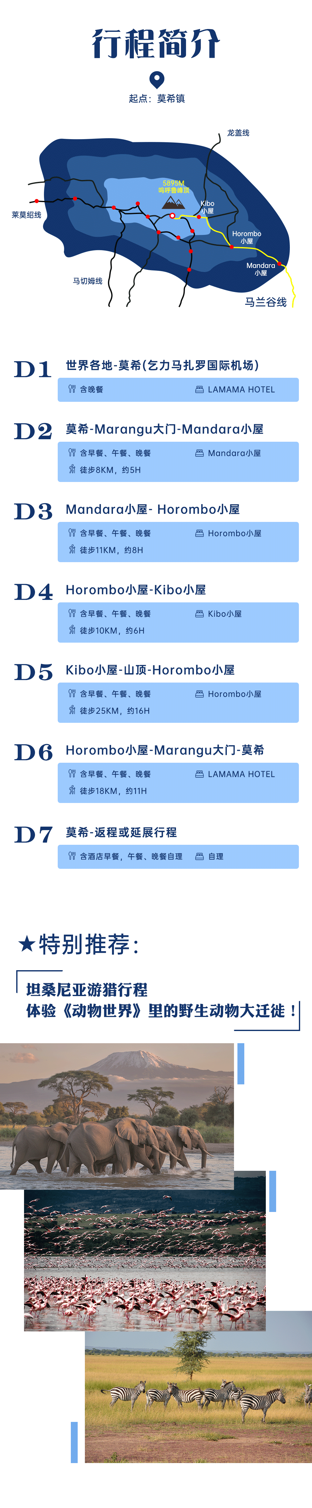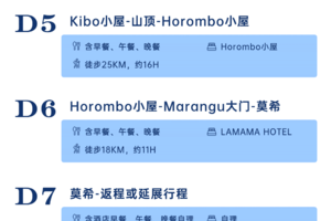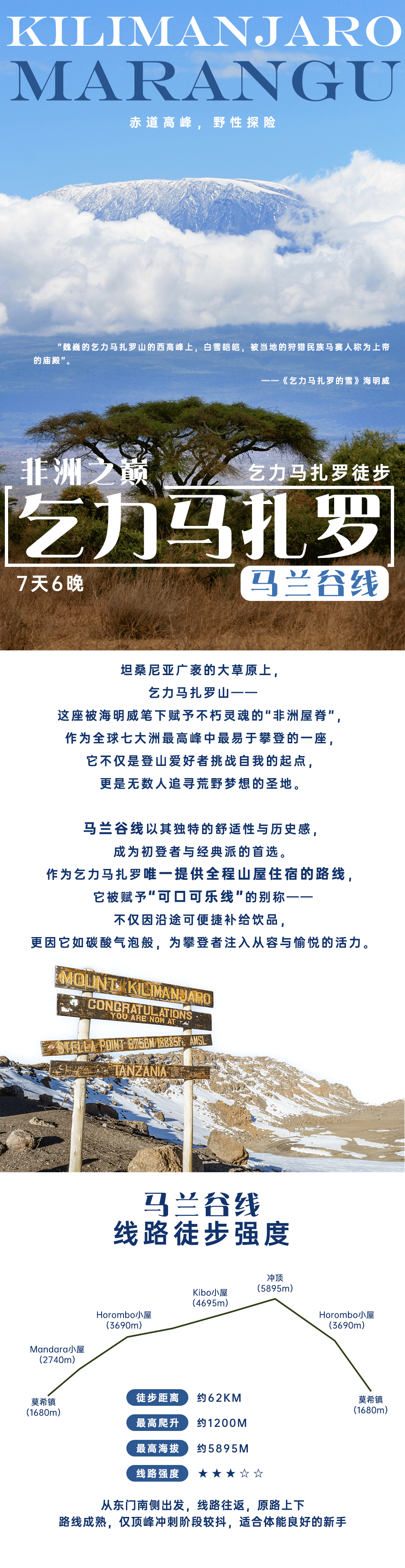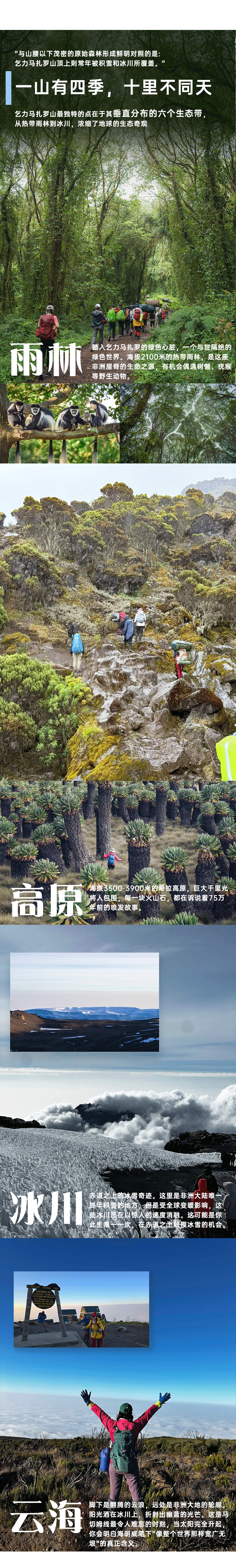 海拔:Kibo小屋(4695m),山顶(5895m),Horombo小屋(3690m)