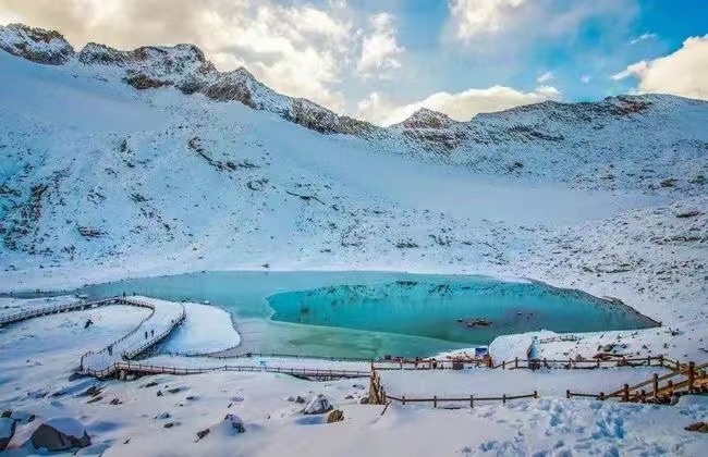 ◆09:00-14:00 游览【达古冰川】自费乘坐景区内观光车(观光车 70 元/人,团费不含需自理)沿途可游览【金猴湖】后进入藏民风情体验区,游览【上、中、下达古藏寨】【放生湖】,进入高山牧场休闲区可,游览【达古湖】,到达索道下站客人可选择自费乘坐景区便民设施,全球第一高海拔观光索道(索道自费180 元/人,观冰川全景、咖啡厅等景点位于山顶,只能乘坐索道前往)。到达海拔 4850 米的冰川腹地,融入空旷寂灵的冰天雪地,观赏一号冰川,感受一览众山小,俯视一切的雄壮气概,或者徒步游览【凌云瀑布】【红石坡】等景点。