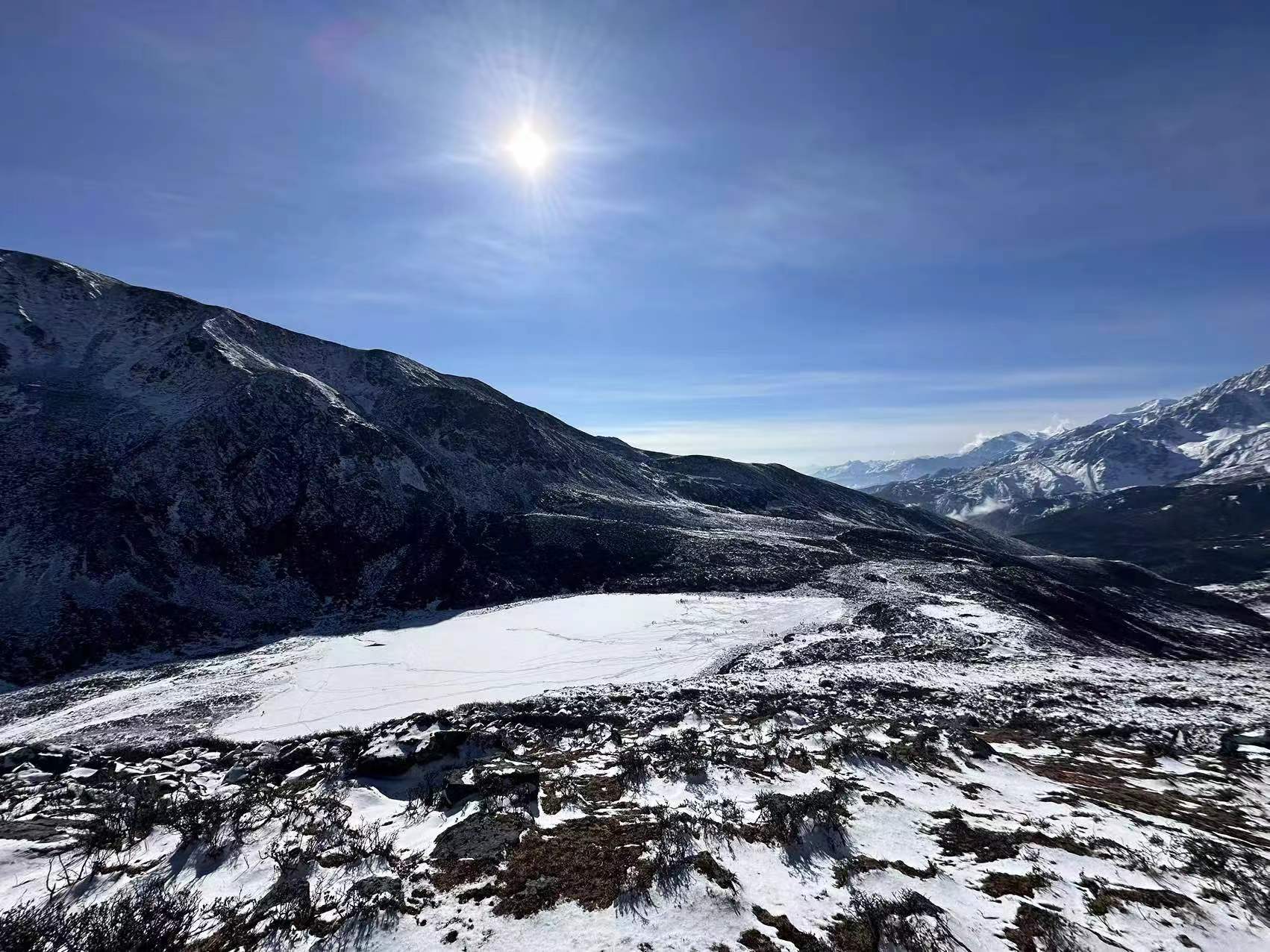 同时也是相对轻松的高山海子徒步,待冬季便会迎来属于她的黄金时期,整体海拔4000m左右,往返徒步5km,上行约需2.5小时,爬升约400米左右。