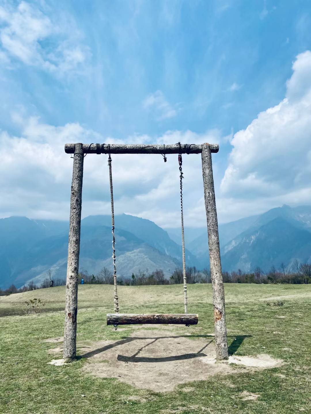 在这里,你可以一次性欣赏到广袤的高山草甸(3月还没绿)、悠闲的秋千、自在的牛羊群以及雪山壮丽的远景。熊猫坪无疑是你在周末放空、与自然亲密接触的理想之选~