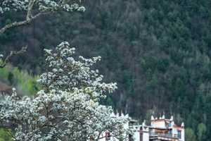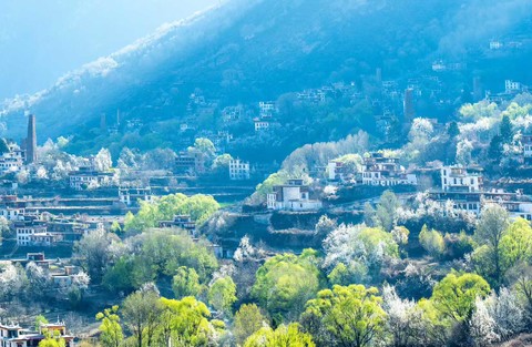 每年三月,当川西大部分地方仍带着些许寒意时,金川河谷已经悄悄进入春天。沿着大金川河两岸延伸的万亩梨花在短短十多天里集中绽放,白色花海铺满整条河谷,从山脚一直延伸到半山藏寨。