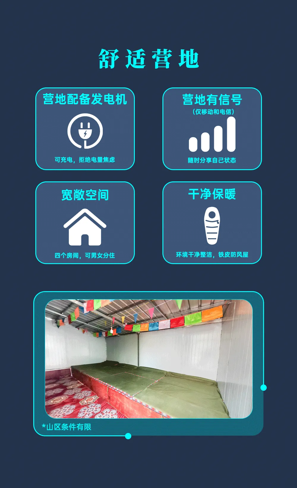 餐食:含早餐,午餐路餐自理,含营地晚餐(炒菜)