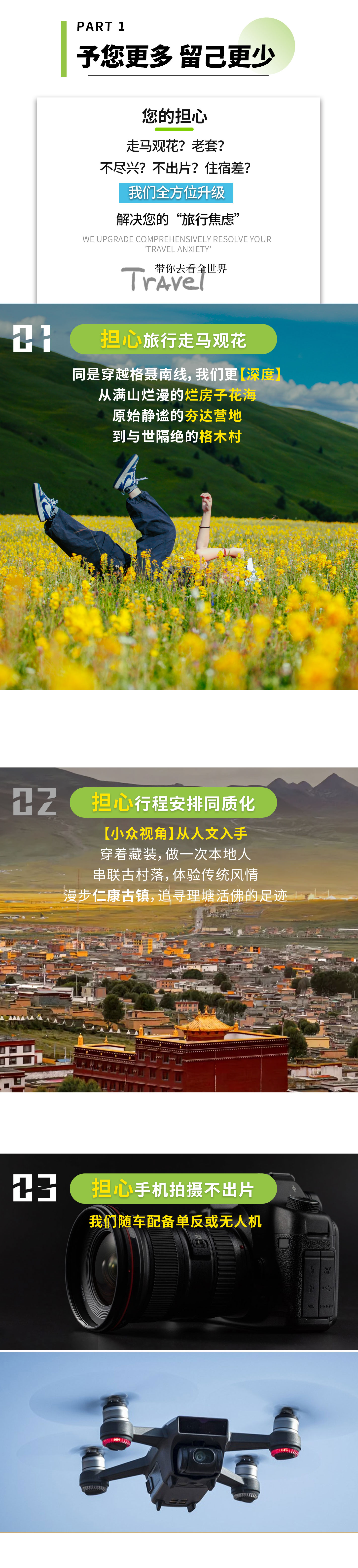 6、随车配备无人机或单反(注:旺季因设备调度紧张,可能无法保证供应,敬请谅解);