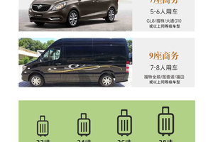 (3)行李箱:小车空间有限,建议行李箱大小控制在20-24寸。