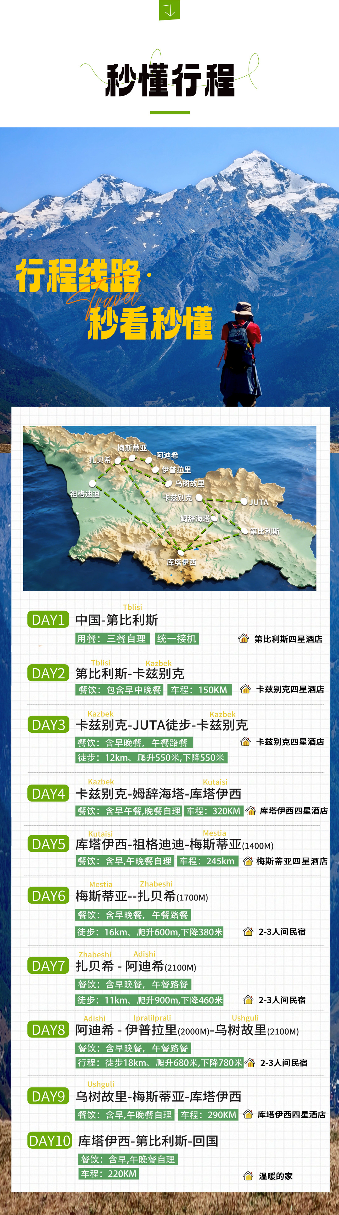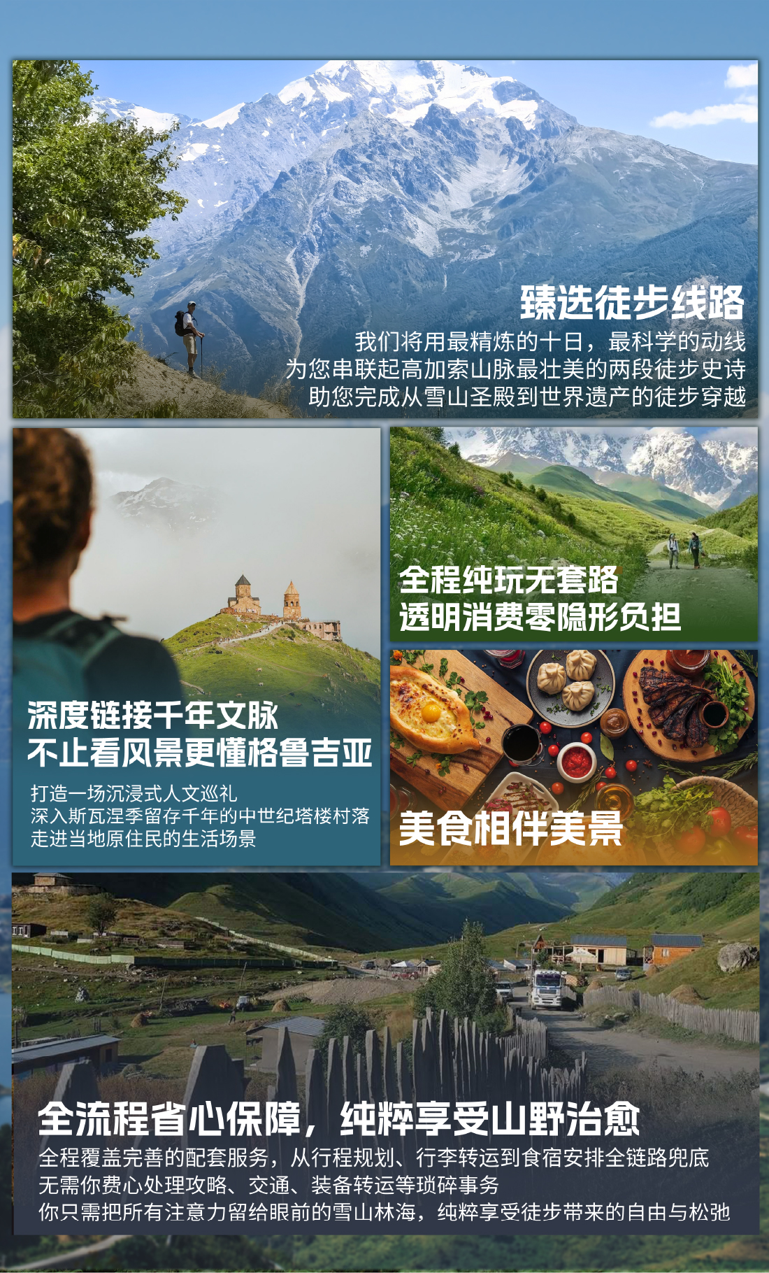 2. 交通:格鲁吉亚境内包车、徒步中行李转运车、一次团队统一接送机;