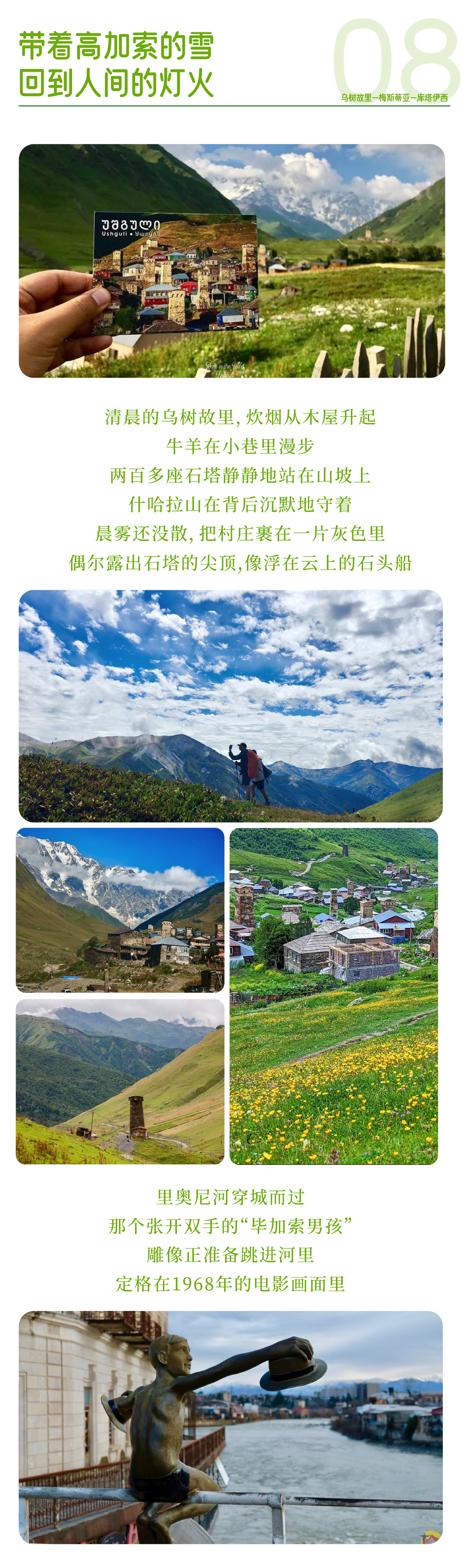 傍晚时分,怀揣着满满的旅程记忆与不舍,前往机场,搭乘航班启程回国。这场高加索的深度之旅,有山川美景,有历史人文,更有令人难忘的热情与浪漫,必将成为你最美好的旅行回忆之一,期待与你再次相遇于格鲁吉亚!