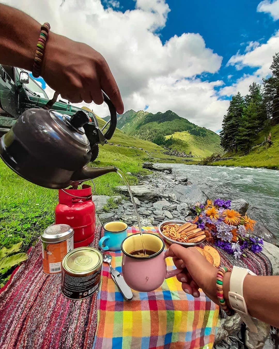 可抵达JUTA湖或就近垭口打卡,视野开阔出片。途中在草甸野餐休整,沉浸式感受高加索山野的纯净与壮阔。