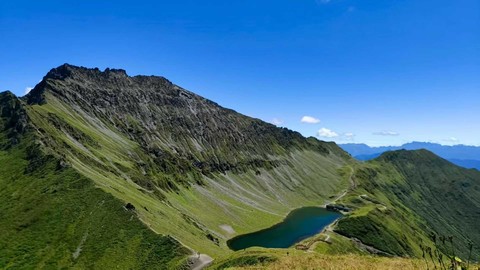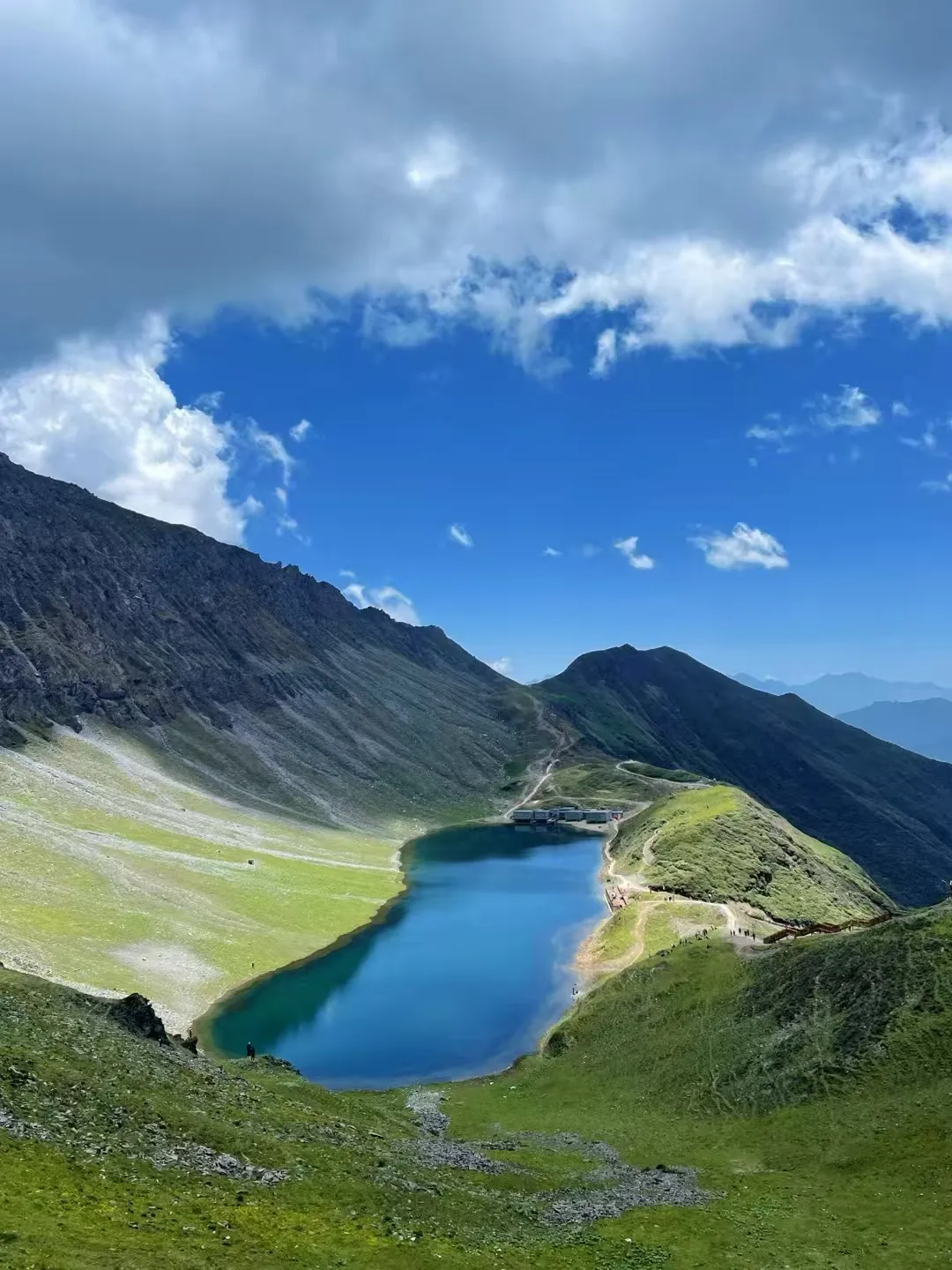 穿过杜鹃林后,视野豁然开朗,高山草甸铺展至天边,终点龙池海拔近4100米,湖水碧蓝如镜,此路线全程无信号,海拔较高,适合有一定徒步经验的朋友。