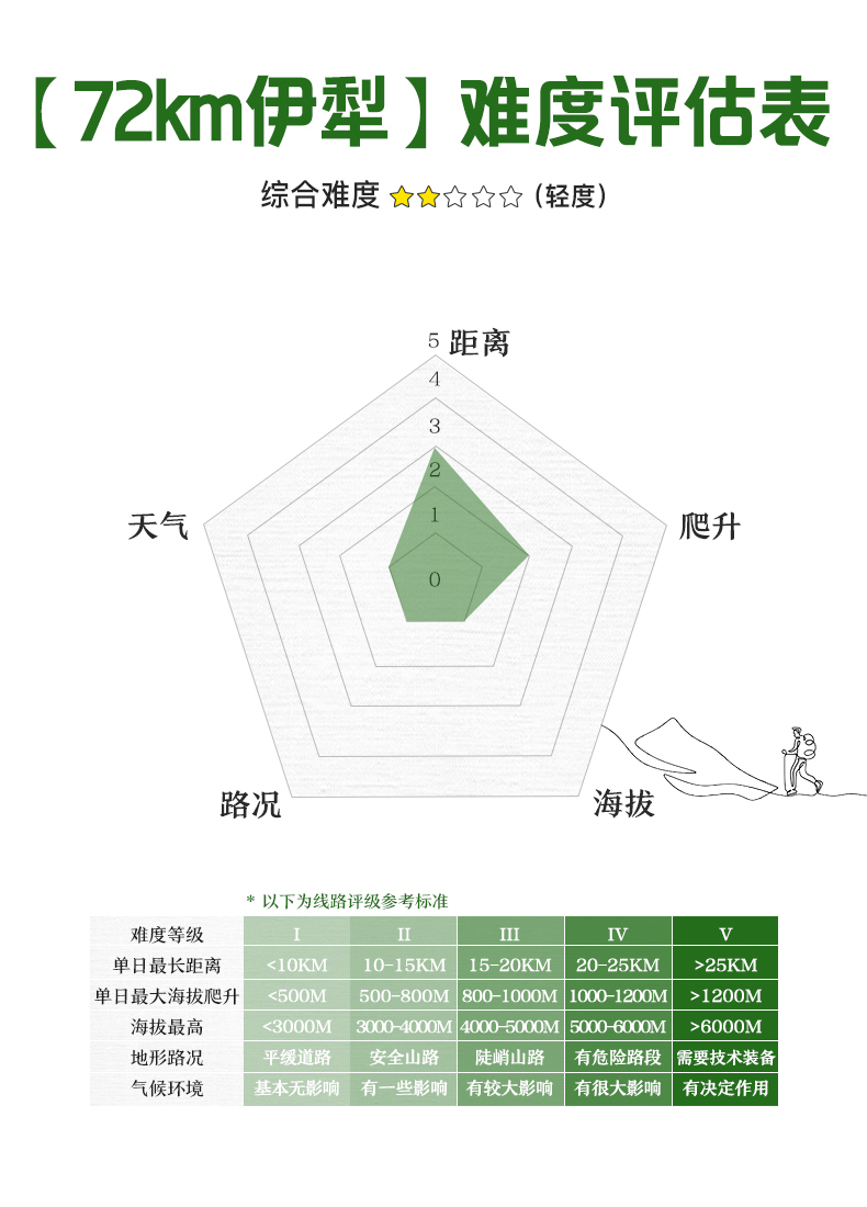 这条线路巧妙地将驾驶与徒步结合,全程约72公里,每天安排8–16公里的轻装徒步(约3–5小时),最高海拔控制在2700米左右,