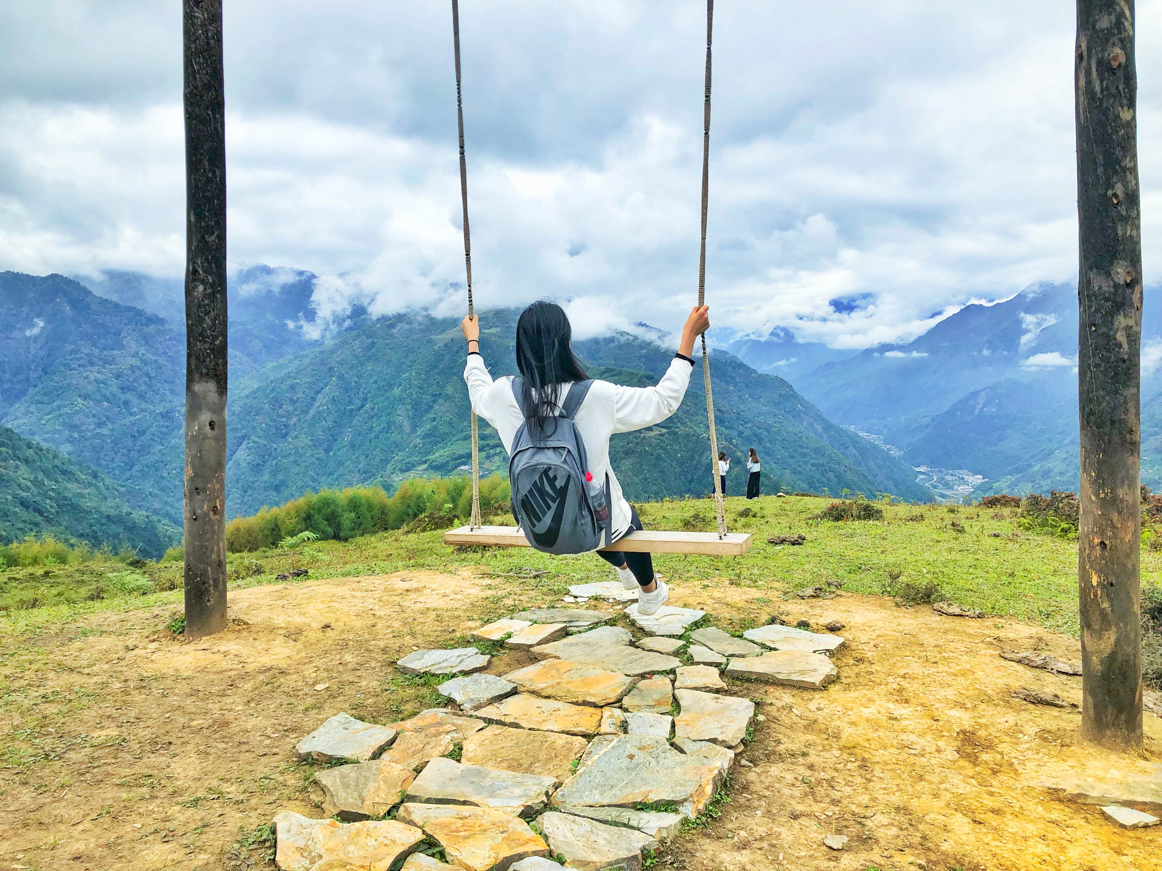 ▶早上我们准时出发,迟到不等(大家一定要吃早饭哦)!车上领队组织大家自我介绍,拉近彼此距离10:30左右到达卧龙转经楼村,换乘当地中转车前往徒步起点,人少景美,无需排队,中转车上山,徒步1h即可到达云中牧场这里有无羁的马、蠢萌的牛、和慵懒的羊是放空自我的好地方,我们可以荡着秋千看向远方的云瀑,席地而坐分享彼此带来的食物。